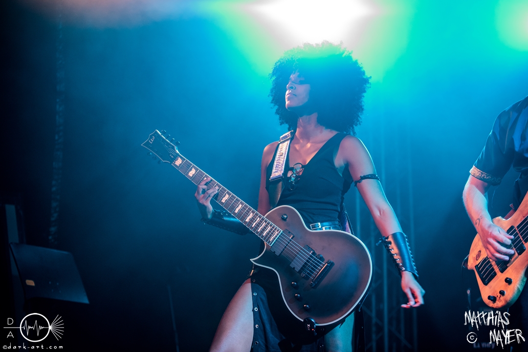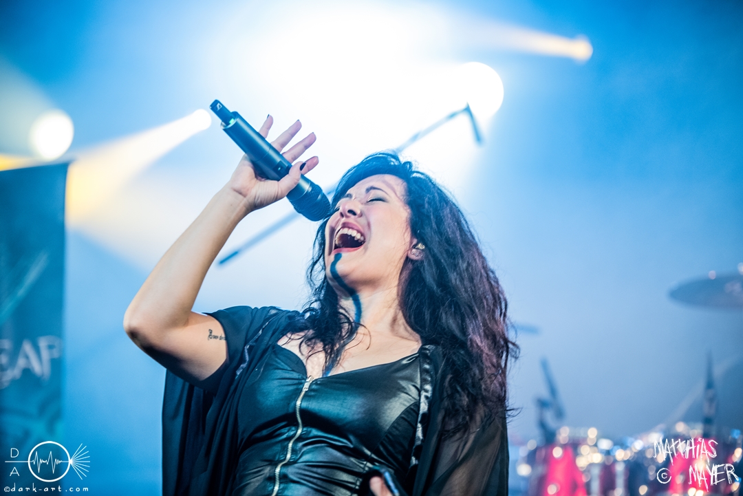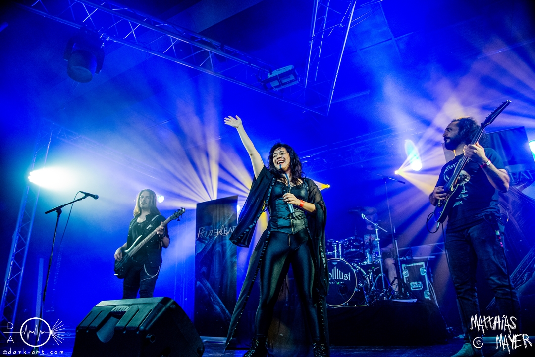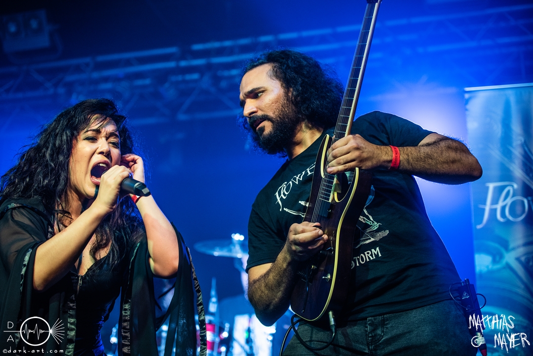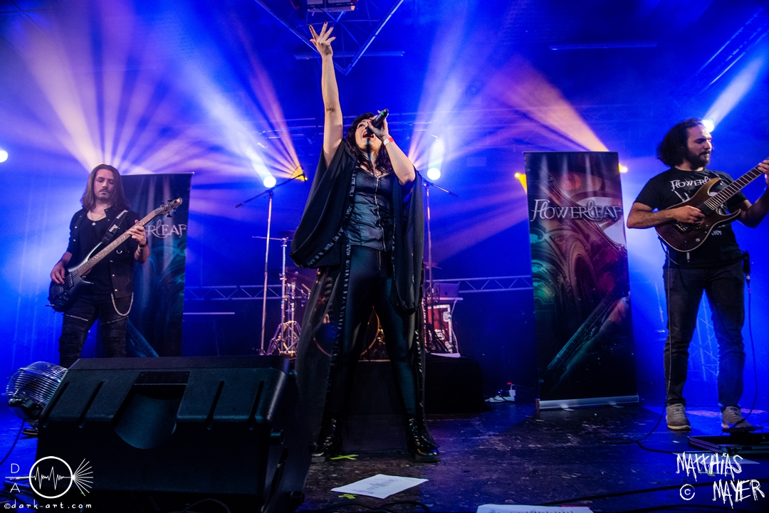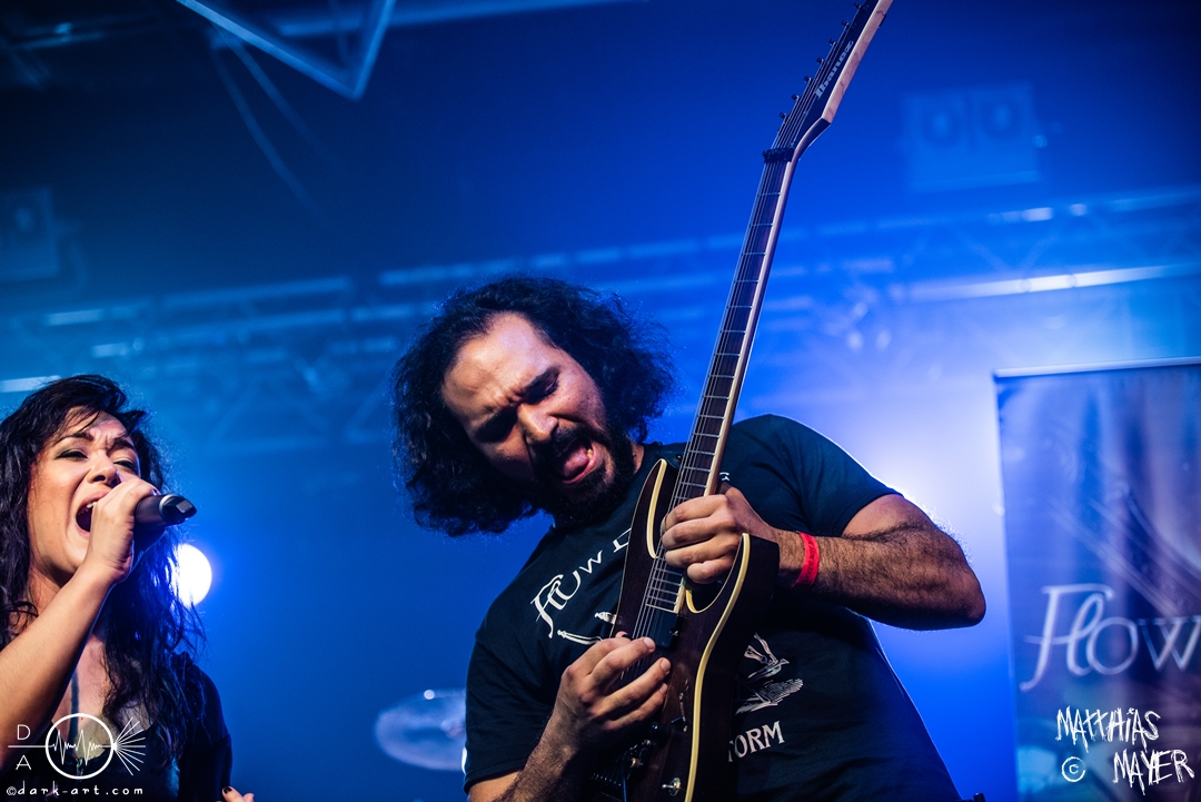 Anschließend beginnen FlowerLeaf das reguläre Programm und können sofort das Publikum überzeugen. Die Band um die brasilianische Sängerin Vivs Takahashi zeigt viel Begeisterung auf der Bühne und präsentiert sich sehr aktiv, obwohl sich an den Besucherzahlen leider im Vergleich zum Vortag kam was verändert hat. Anwesende Fans konnten auch sofort erkennen, dass sich an der Besetzung etwas getan hatte. Da leider beide Gitarristen verhindert waren, wurde nun ein Ersatz auf die Bühne geholt. Herausragend in Erinnerung bleibt unter anderem die sehr starke Nummer Grain of Sand. Aber auch ein neuer Song, Stargazers, wurde präsentiert, der zugehörige Mitmachteil ging leider etwas unter durch das geringe Publikum. Beim vorletzten Song des Sets überraschte Vivs dann auch noch mit ihrer Growlfähigkeit.