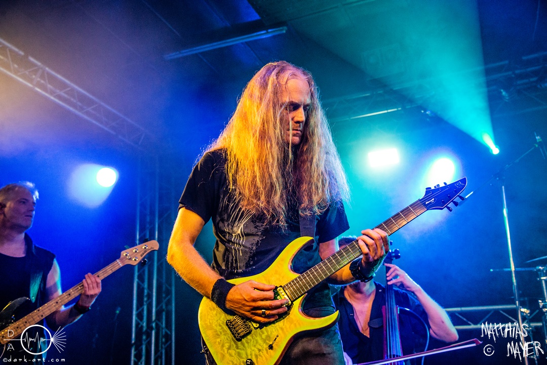 Weiter ging es dann mit Remember Twilight, der letzte Zuwachs des Line-Ups, welche nur wenige Tage vor der Veranstaltung bestätigt wurden. Auch diese standen in Ersatzbesetzung auf der Bühne, sodass diesmal Sänger Timo selbst zur Gitarre griff um die Band zu vervollständigen. Schon während des ersten Songs, Sabbat, gab es massive Probleme mit den Geigen, sodass danach erstmal der Auftritt kurz unterbrochen werden musste um den Sound zu richten, bevor es dann mit dem dazugehörigen Selbstmord weiter ging. Auch das neue Das Leben Tanzt nicht mehr durfte nicht fehlen. Insgesamt konnte die Band durch ihren speziellen Sound und die lyrischen Qualitäten punkten.