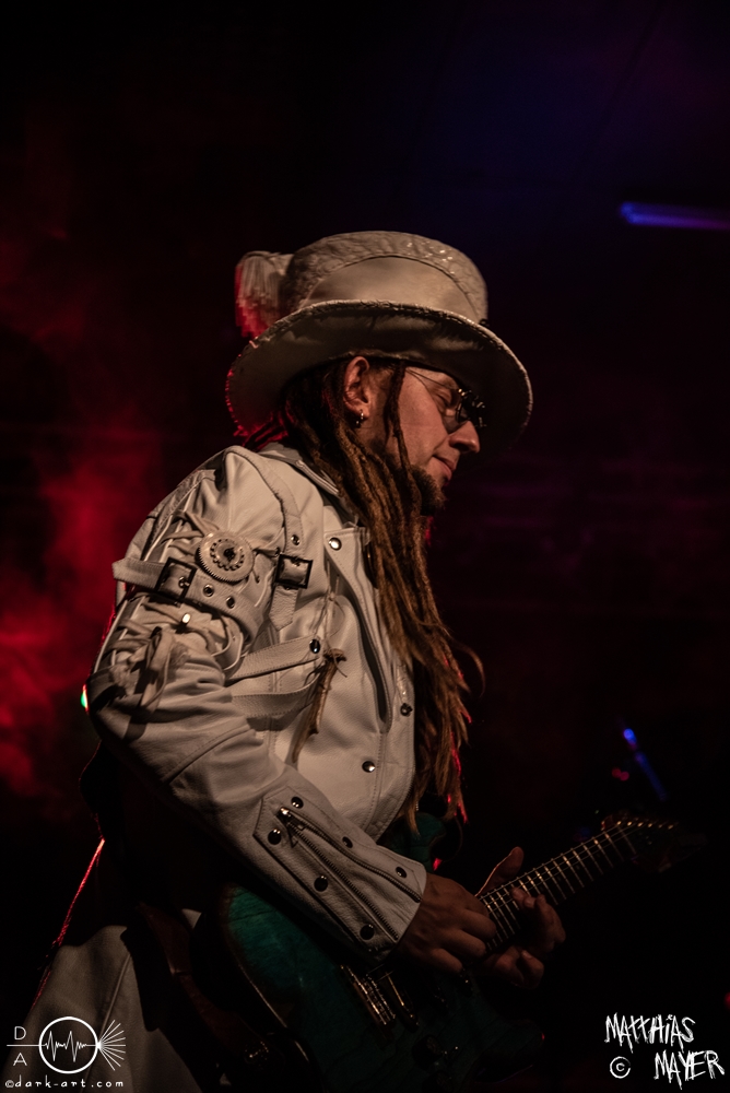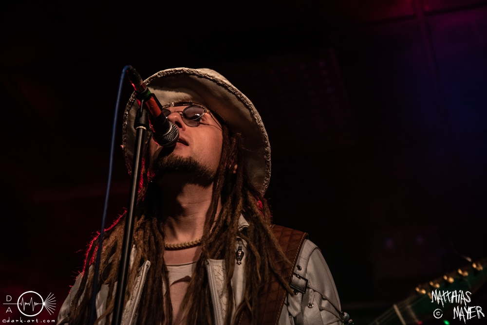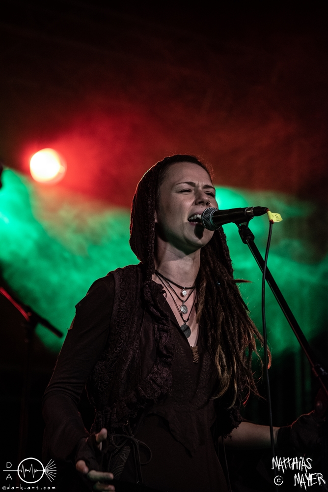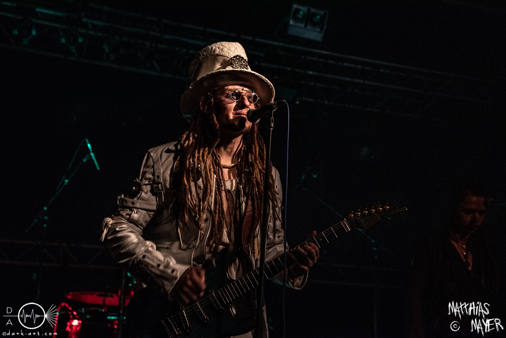 Nun wurde es außergewöhnlich, denn ein Drache landete auf seinem Flug und mit einem Jahr Verspätung im Hellraiser. „Drachenflug“ aus Buxtehude im Norden Deutschlands mussten im vorherigen Jahr leider absagen, fanden jedoch dieses Jahr die Gelegenheit ihre Show nachzuholen. Irgendwo zwischen Steampunk Outfit und Thematik, düsteren bis progressiven Rock Elementen bis hin zu balladenhafteren und leicht folkigen Einlagen war hier auf einen Schlag alles vertreten. Kein Wunder dass die seit 2005 existierende Band auch schon Shows von Festival Medival über WGT bis hin zum Hörnerfest mit Erfolg gemeistert hat. Eine Energievolle Nummer um Sängerin „Belinda Djin“ in die man sich erst etwas einfinden musste, da es für mich nicht ganz so eingängig war wie „Wolfstavar“ zuvor, aber dennoch eine Atmosphäre versprühte, auf die man sich direkt einlassen konnte und den Zuhörer mit Interesse und Freude beglückte.