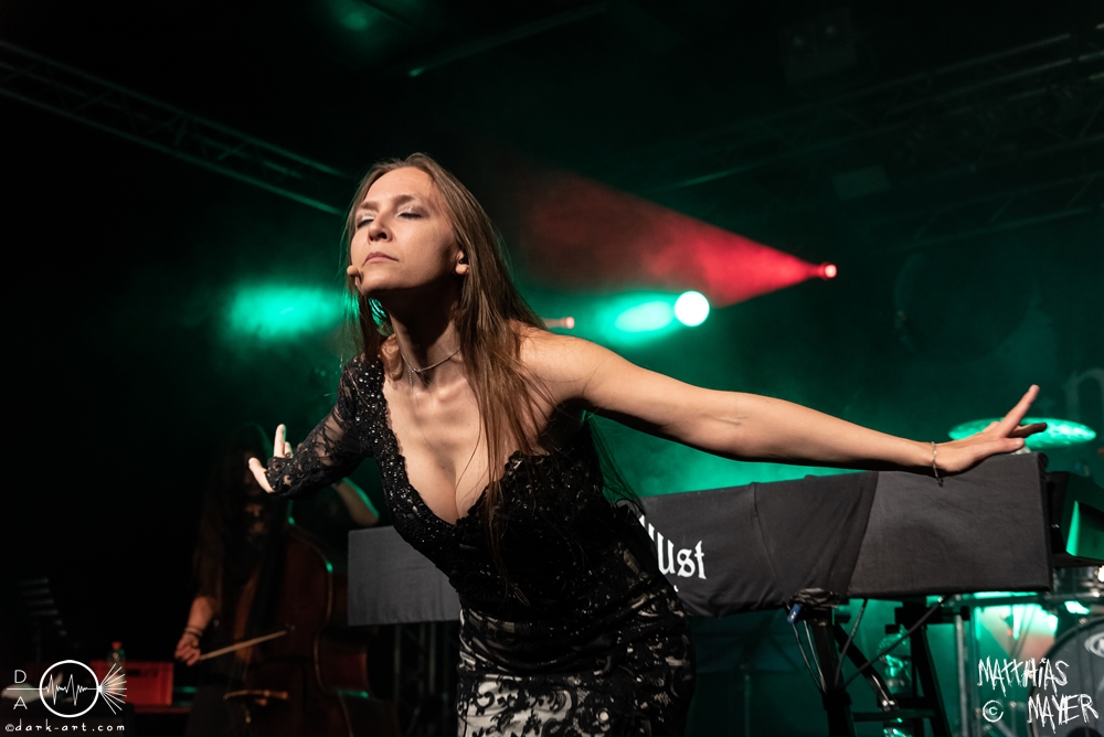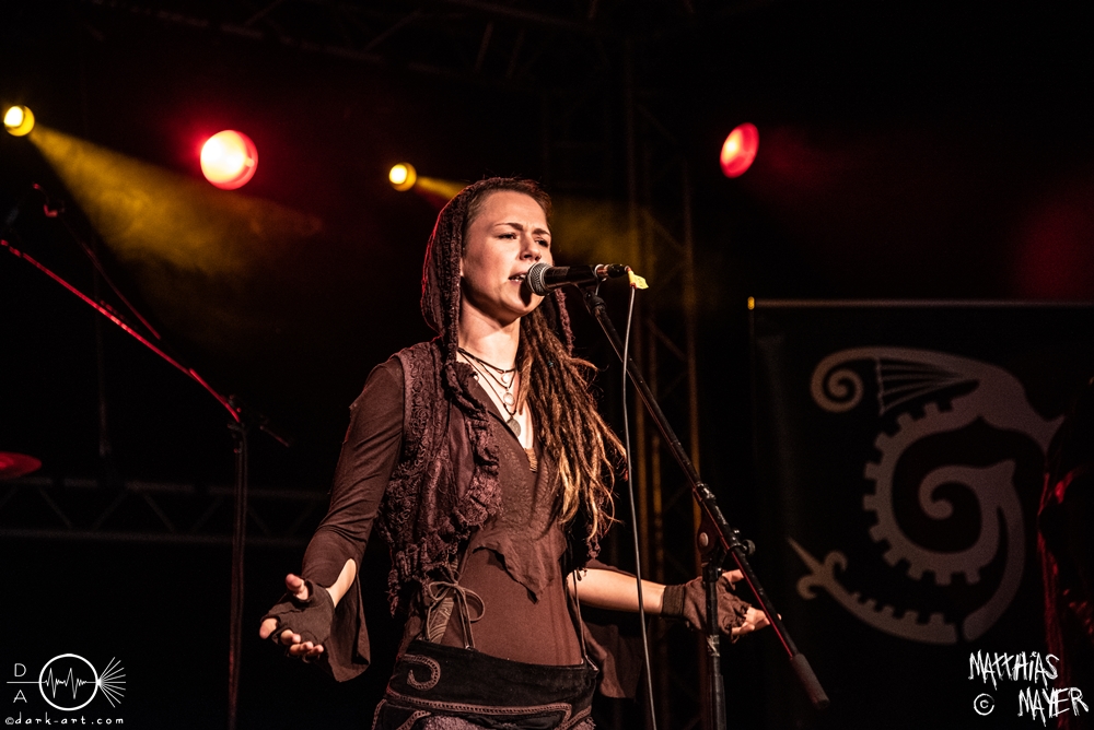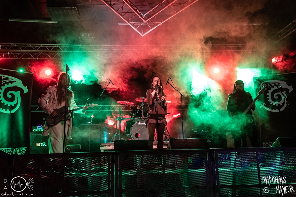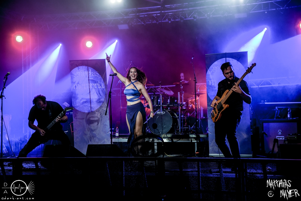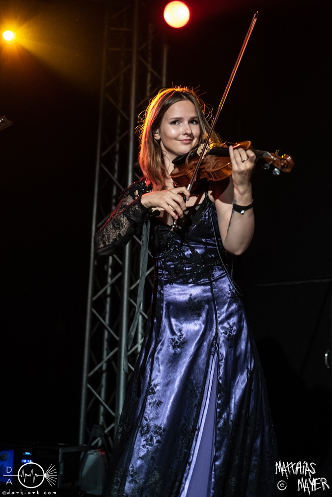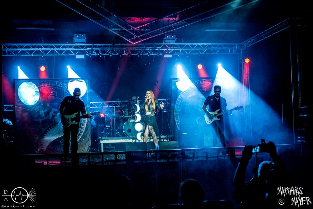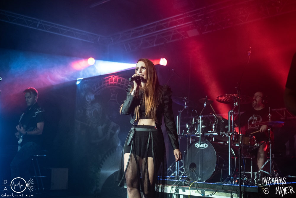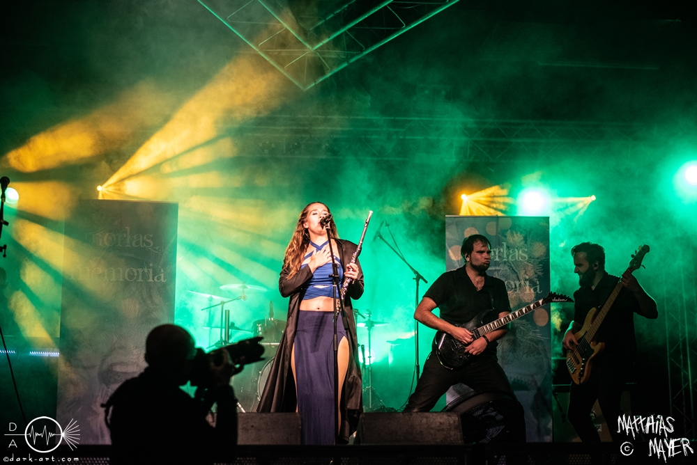 Deswegen springen wir direkt eine Band weiter nach Vorne und es jagte trotzdem ein Highlight das nächste. „Morlas Memoria“ dürfte nun wirklich keinen Szenenanhänger ein Fremdwort sein. Die Band um Frontfrau „Leandra Johne“ (welche auch schon für ihre stimmliche Zusammenarbeit bei dir Dresdener und Wiener Staatsoper bekannt ist) steht einfach für Qualität. Der Auftakt mit „Prolog“, welches direkt in das träumerische „Phantasien“ übergeht, sorgte so zwar nicht unbedingt für eine Überraschung bei mir, aber da es bereits 2017 auf dem Album „Mine Of Pictures“ so gut und stimmig war, freut man sich trotzdem immer es auch live zu hören. Eine starke Band die Können und Präsenz auf der Bühne voll im Griff hat und überzeugt und so freut man sich die Lieder von „Mine Of Pictures“ auch alle live genießen zu können, wenn man die Chance dazu bekommt. Aber wer „Morlas Memoria“ kennt, dem dürfte das nicht neu sein, wer dies nicht tut, sollte sich einmal damit auseinandersetzen.