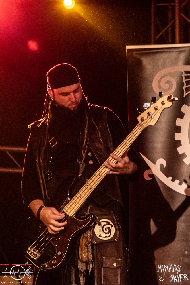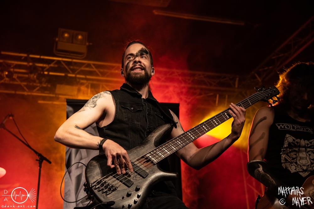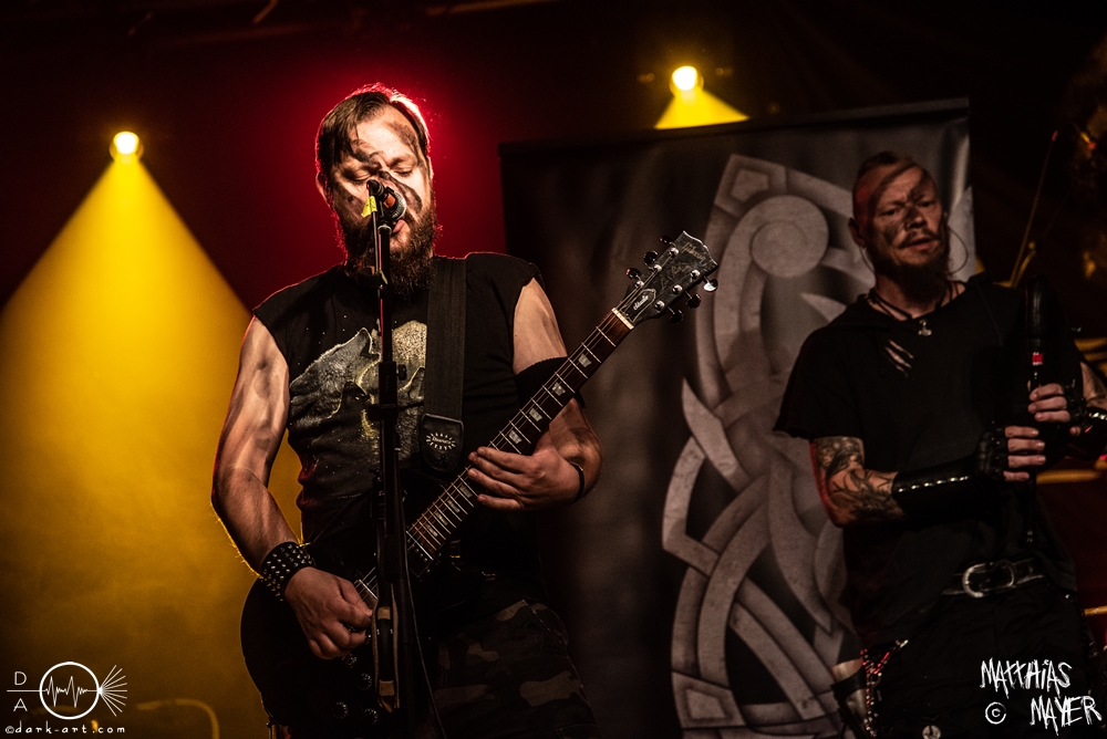 Und kaum hatte man sich umgesehen, ging es auch schon los. Um 18 Uhr wurden die Pforten geöffnet und um 18.45 (leicht nach hinten verschoben, da Cruadalach ja leider nicht kommen konnte) eröffnete die Leipziger Black/Pagan Truppe von „Wolfstavar“. Die Band war mir bis dato noch nicht bekannt, aber sorgte direkt zu Beginn für aufgeheizte Stimmung. Klassischer Pagan Metal, mit zugehörigem Outfit, jeder Menge Trinkliedern und der Huldigung der alten Götter fanden ihren Höhepunkt, als die Band „Auf nach Walhalla“ einlud.