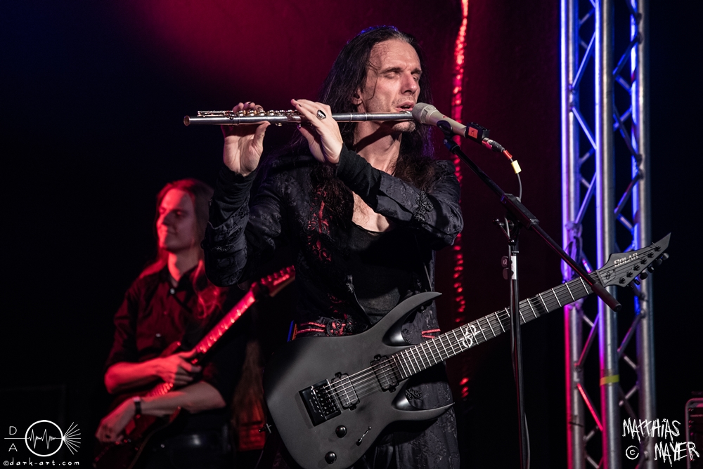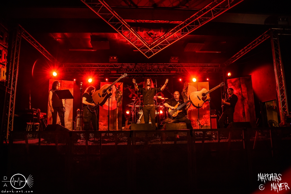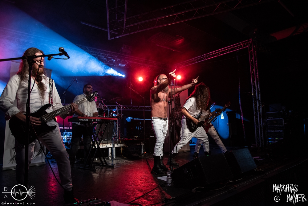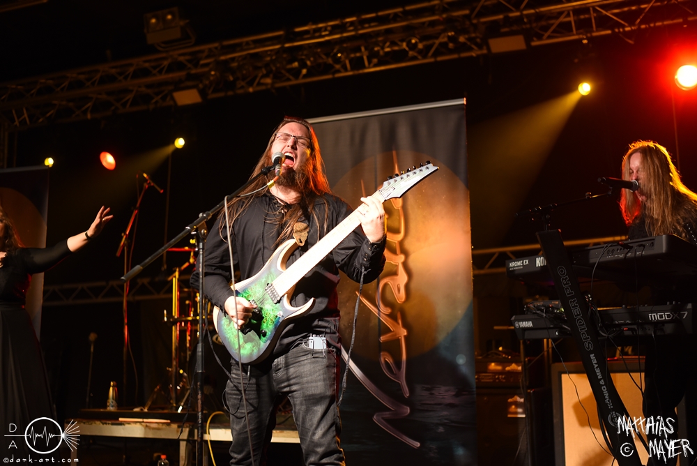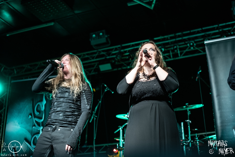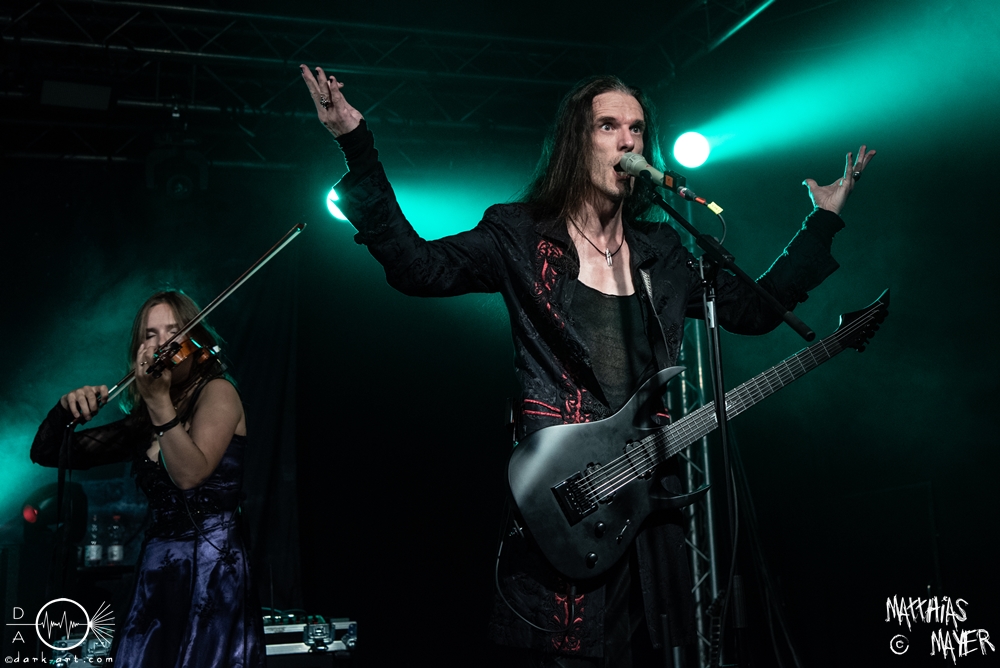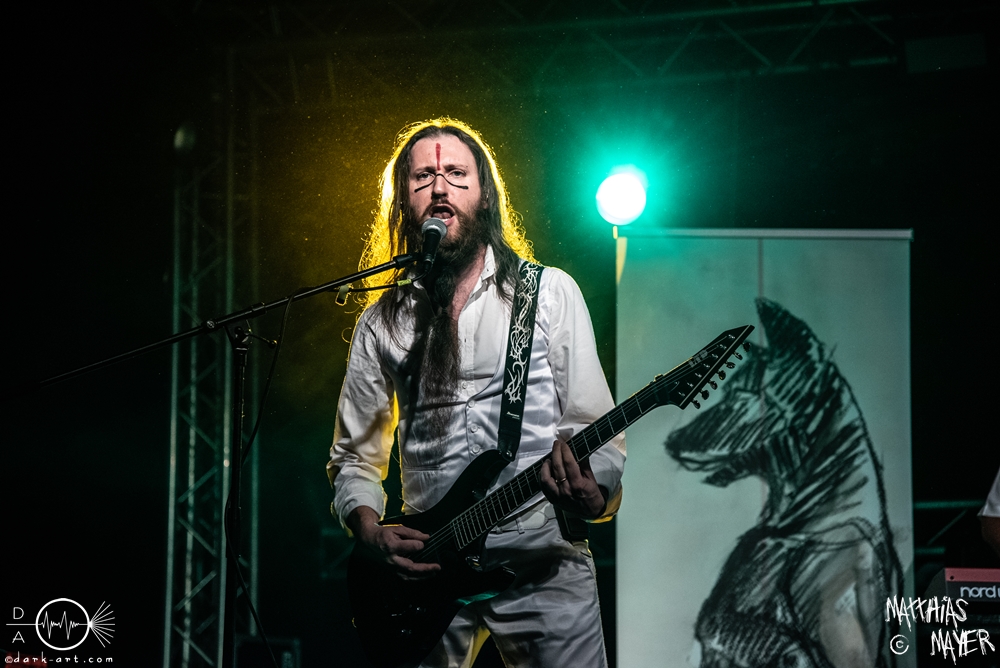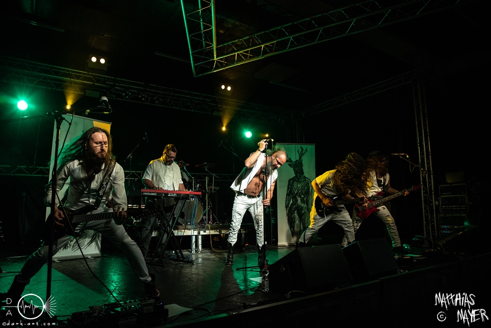 Als nächstes folgte dann wieder etwas Außergewöhnliches und eine Band die mir bisher noch nicht bekannt war. „Arcana Opera A.W.“ heißen die Italiener, welche die 2te Band mit männlichem Gesang stellten. Komplett in Weiß, strahlten Sie eine Reinheit aus, die den ganzen Raum mit erstrahlen ließ. Nun wie soll man die Musik beschreiben? Das fällt mir etwas schwer, da hier einmal wieder viele Stile und Grenzen und Genres gesprengt werden. Es ist auf jeden Fall Metal, es ist auf jeden Fall symphonisch und folkig, war es in dieser Form bis dato einzigartig für mich. Und das Ganze dann auch noch mit Italienischen Texten im Cleanen Gesangsstil untermalt lies alles sehr kunstvoll und elegant auf mich wirken. Trotz der hohen Kunst blieben Stimmung und Feierlaune aber nicht auf der Strecke und ein weiterer Höhepunkt für mich wurde geboren.