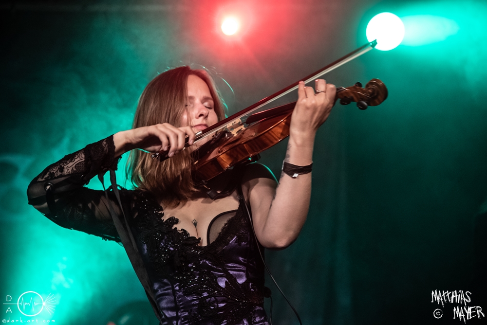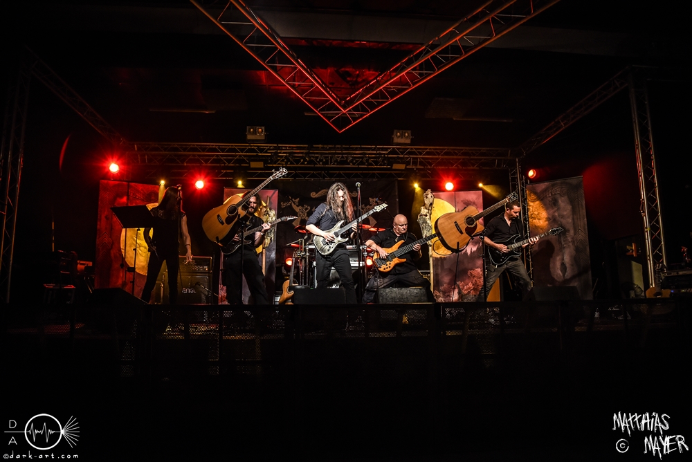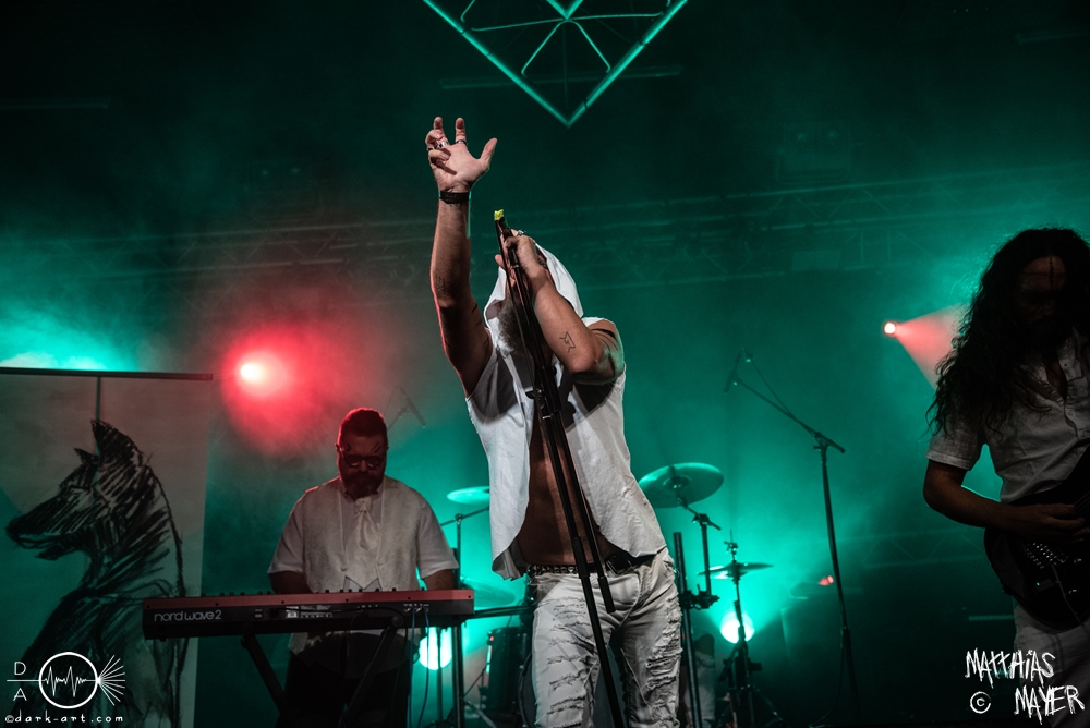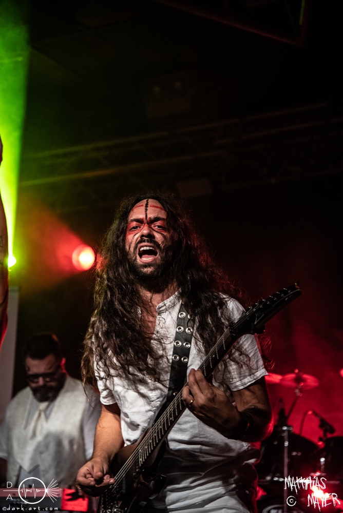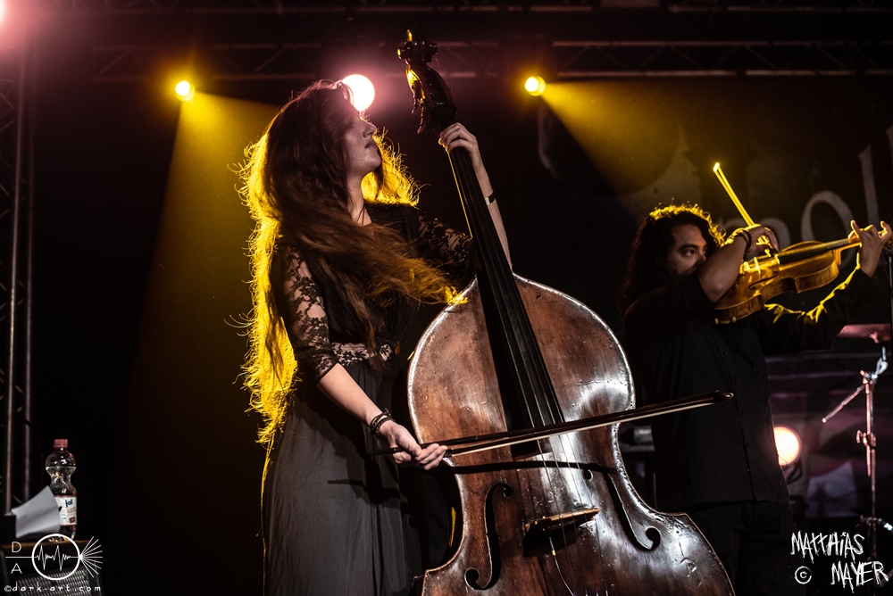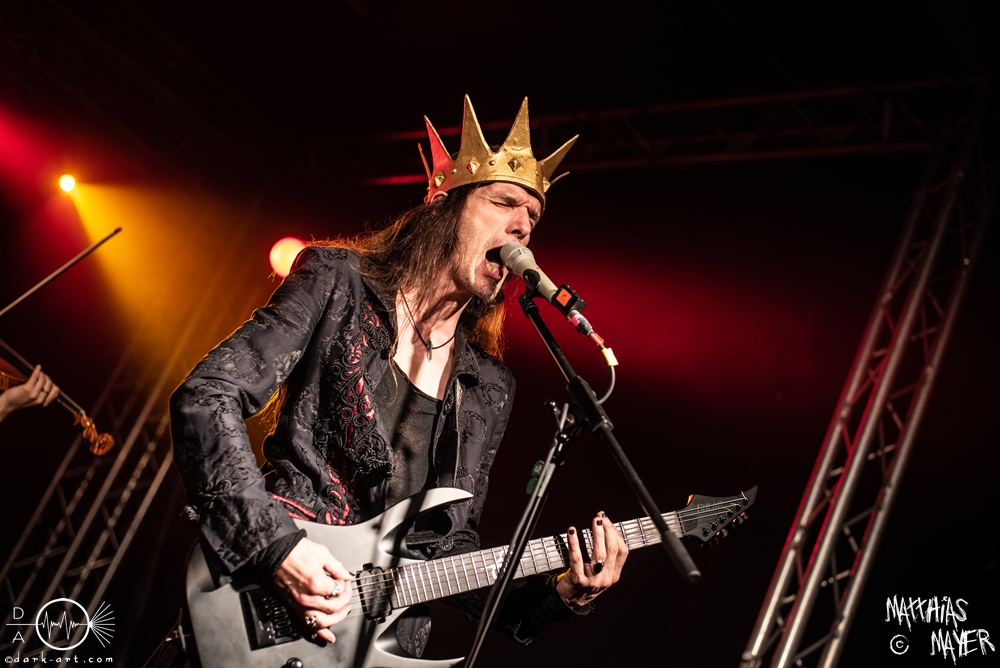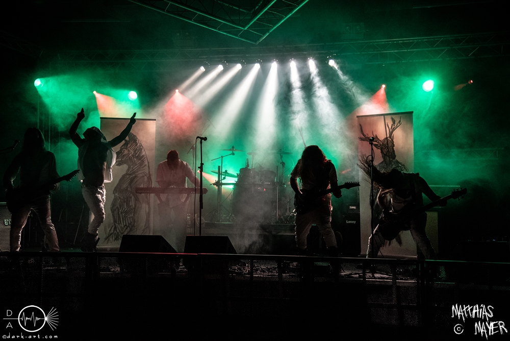 Als nächstes folgte dann wieder etwas Außergewöhnliches und eine Band die mir bisher noch nicht bekannt war. „Arcana Opera A.W.“ heißen die Italiener, welche die 2te Band mit männlichem Gesang stellten. Komplett in Weiß, strahlten Sie eine Reinheit aus, die den ganzen Raum mit erstrahlen ließ. Nun wie soll man die Musik beschreiben? Das fällt mir etwas schwer, da hier einmal wieder viele Stile und Grenzen und Genres gesprengt werden. Es ist auf jeden Fall Metal, es ist auf jeden Fall symphonisch und folkig, war es in dieser Form bis dato einzigartig für mich. Und das Ganze dann auch noch mit Italienischen Texten im Cleanen Gesangsstil untermalt lies alles sehr kunstvoll und elegant auf mich wirken. Trotz der hohen Kunst blieben Stimmung und Feierlaune aber nicht auf der Strecke und ein weiterer Höhepunkt für mich wurde geboren.