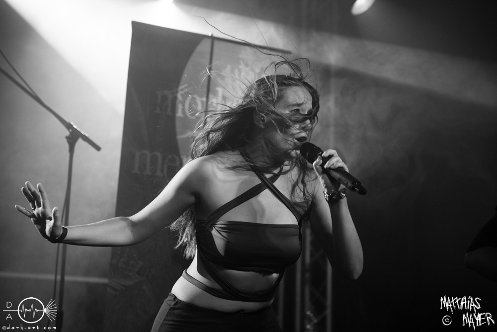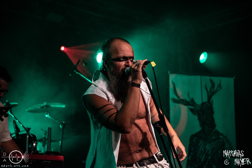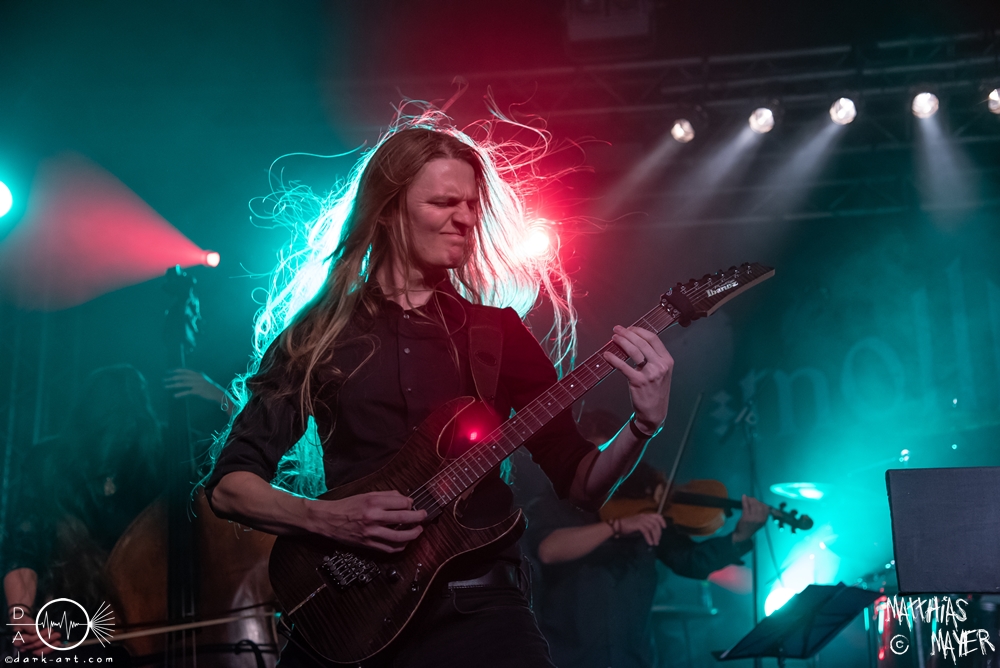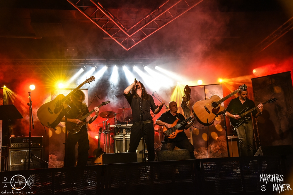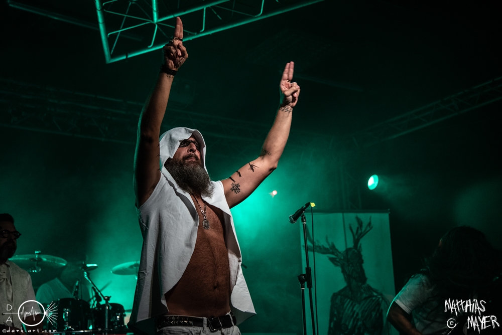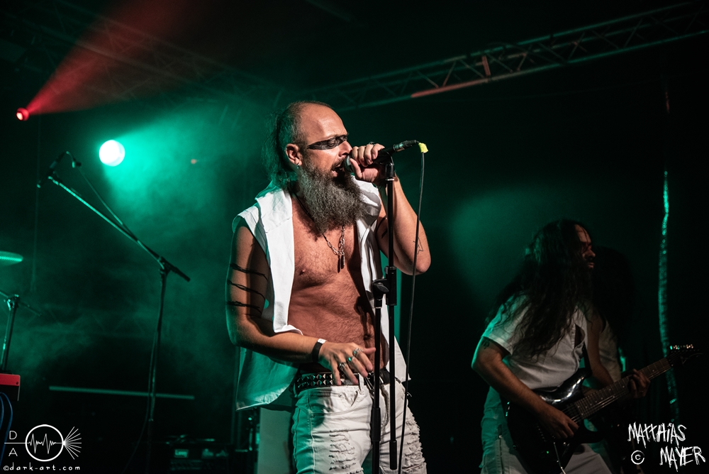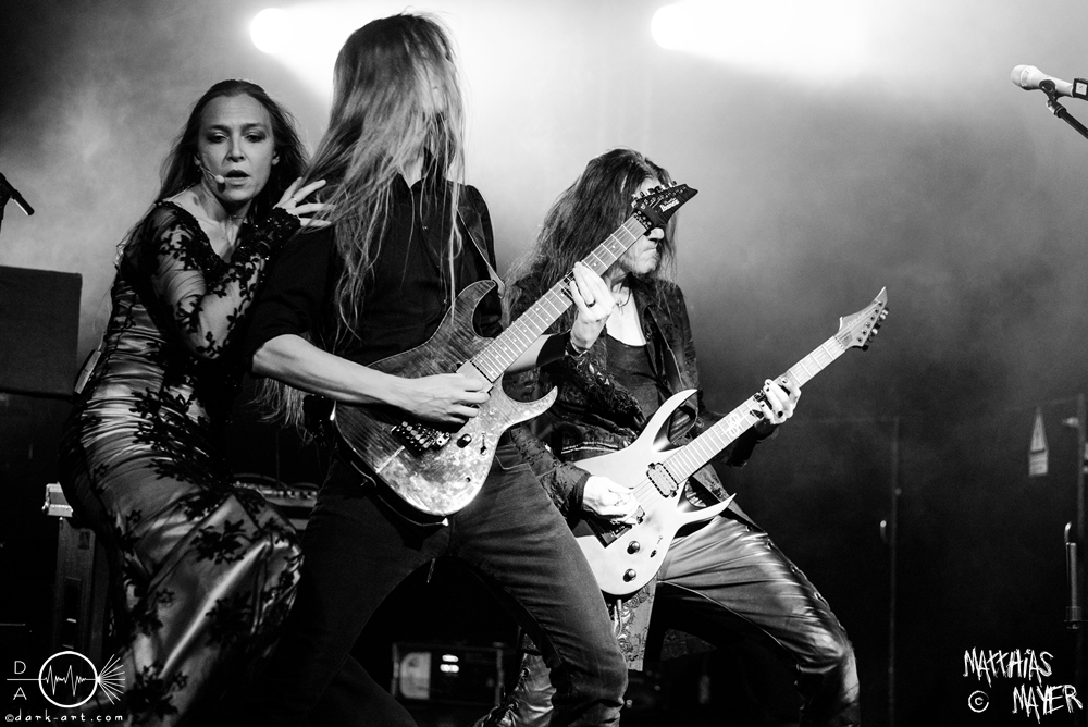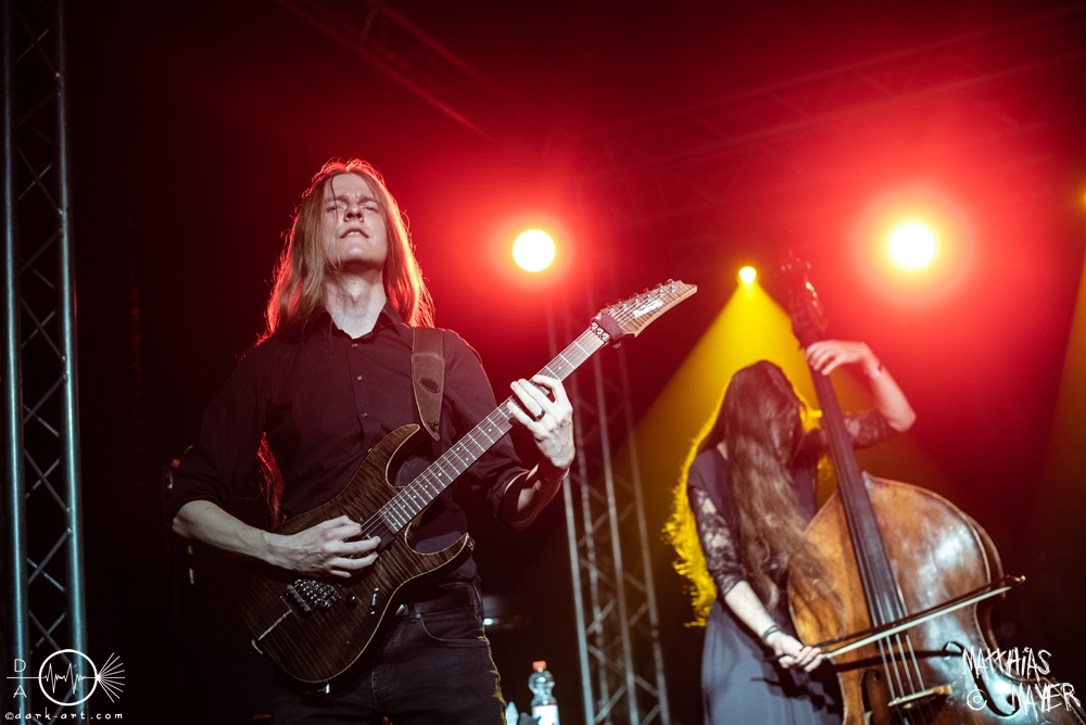Als nächstes folgte dann wieder etwas Außergewöhnliches und eine Band die mir bisher noch nicht bekannt war. „Arcana Opera A.W.“ heißen die Italiener, welche die 2te Band mit männlichem Gesang stellten. Komplett in Weiß, strahlten Sie eine Reinheit aus, die den ganzen Raum mit erstrahlen ließ. Nun wie soll man die Musik beschreiben? Das fällt mir etwas schwer, da hier einmal wieder viele Stile und Grenzen und Genres gesprengt werden. Es ist auf jeden Fall Metal, es ist auf jeden Fall symphonisch und folkig, war es in dieser Form bis dato einzigartig für mich. Und das Ganze dann auch noch mit Italienischen Texten im Cleanen Gesangsstil untermalt lies alles sehr kunstvoll und elegant auf mich wirken. Trotz der hohen Kunst blieben Stimmung und Feierlaune aber nicht auf der Strecke und ein weiterer Höhepunkt für mich wurde geboren.