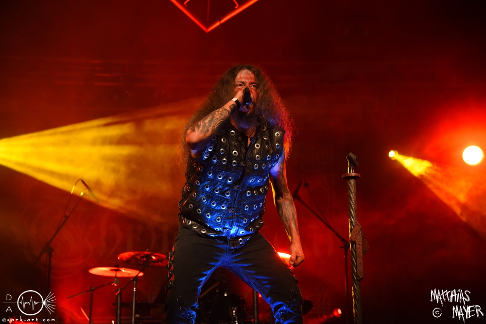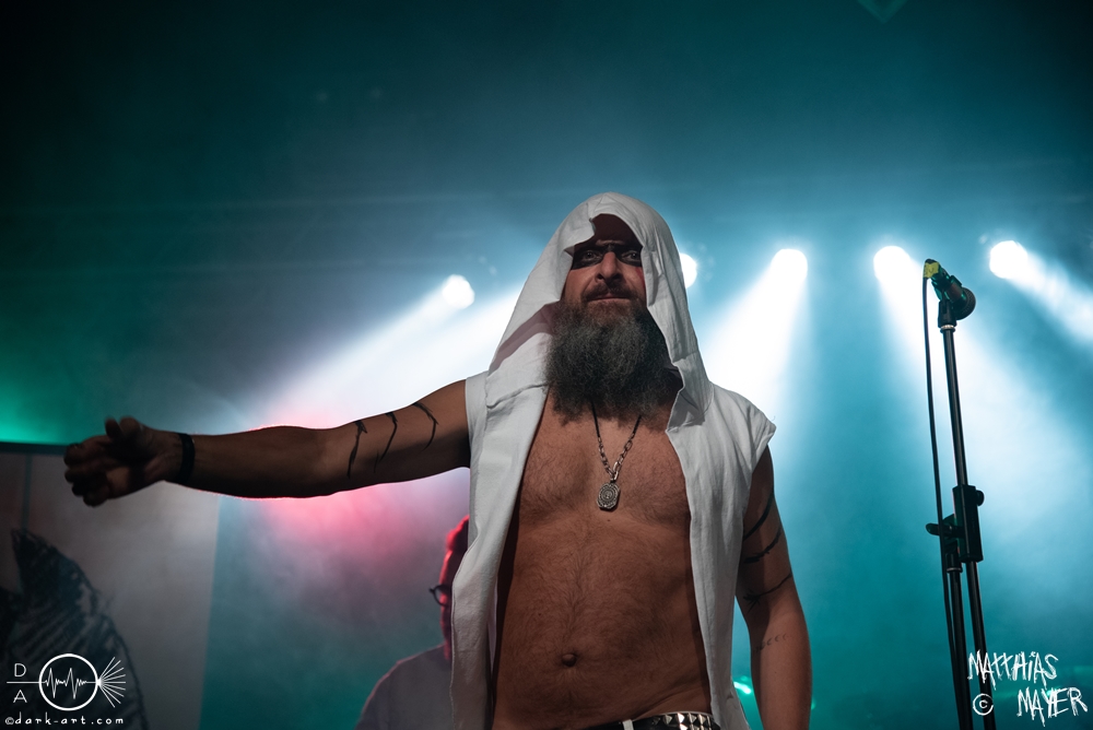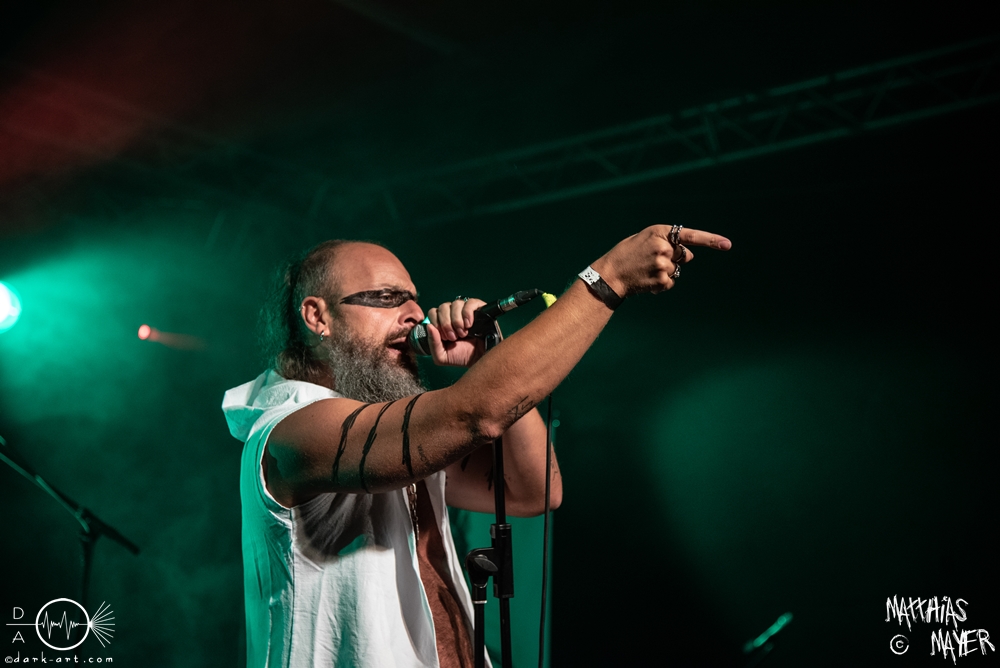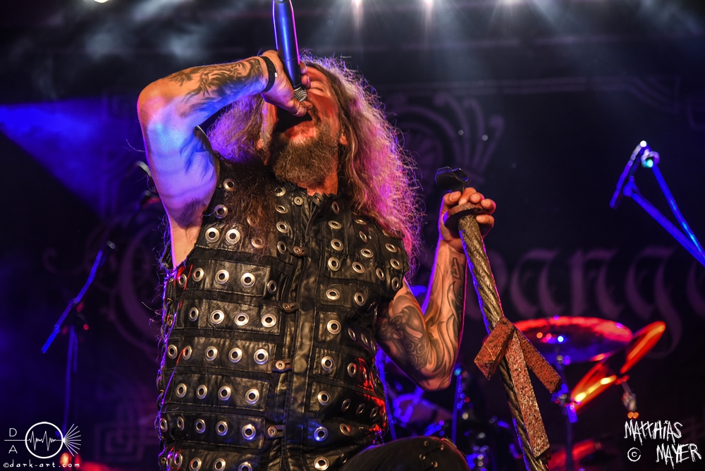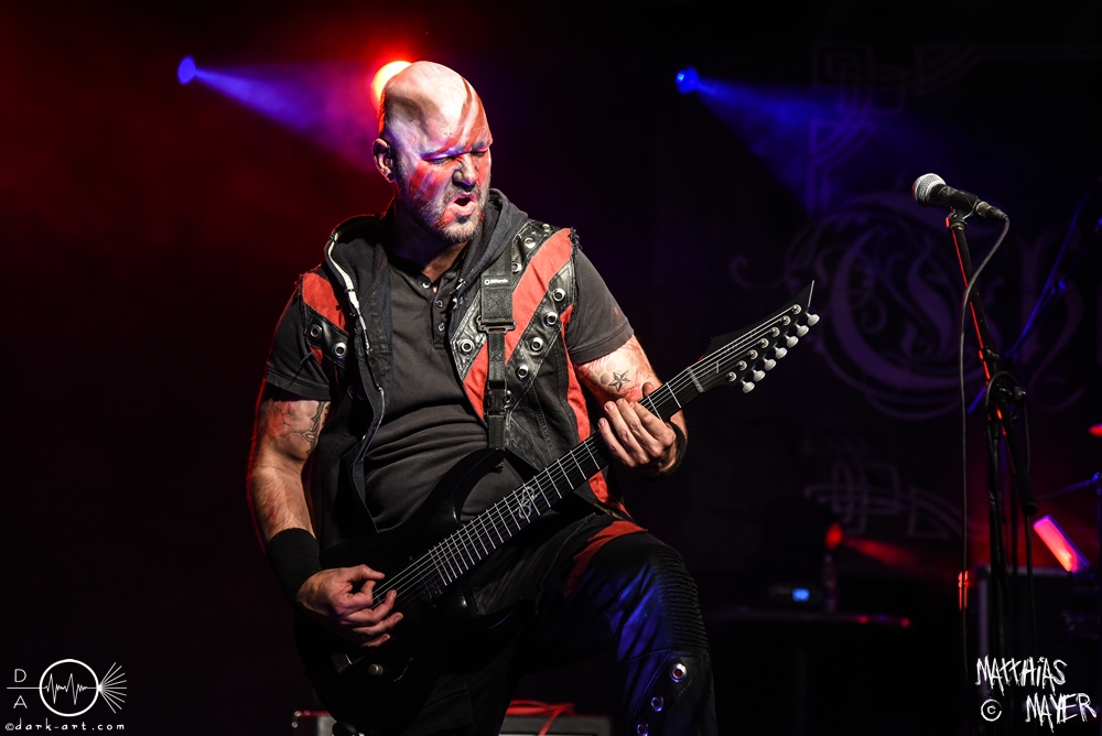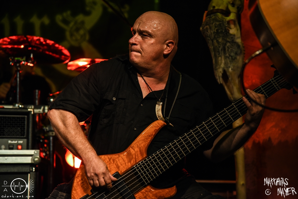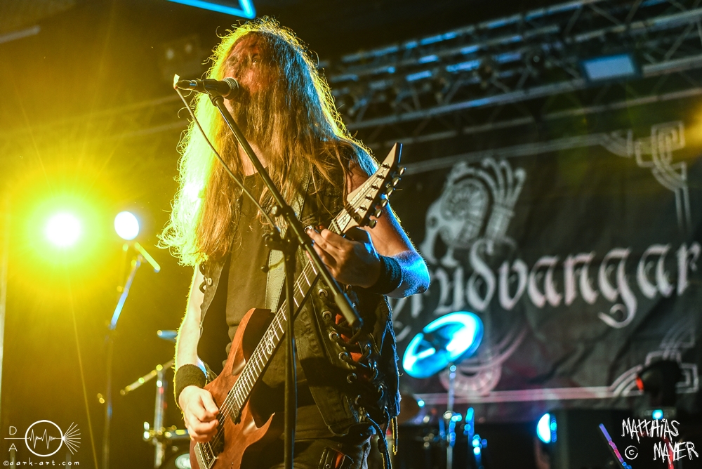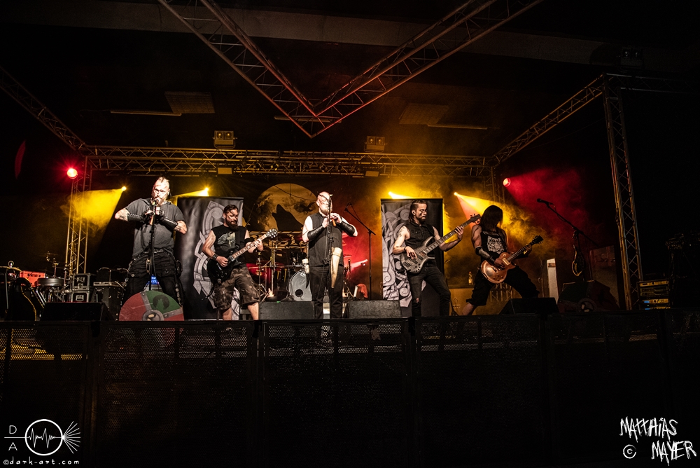 Und „Schwups“ da wart es schon 23 Uhr als der Umbau für den Freitag Headliner begann. Der Abend jedoch blieb im Zeichen der Heidnischen Götter stehen und es kam wieder eine seit über 20 Jahren aktive Band u Wort, welche ich nun auch schon länger nicht mehr live oder im Programm stehen hatte sehen. Das letzte Album „Tiwaz“ erschien auch bereits 2013 bei Massacre Records bevor es etwas stiller wurde um „Thrudvangar“. Jedoch immer noch schön zu sehen, dass die Herren weiter aktiv am Viking/Black Metal teilnehmen. Für mich als Fan der frühen Tage stellt sich hier direkt wieder die Frage, wann und wird es ein neues Album geben? Das wäre sicherlich sehr interessant. Bevor ich jedoch den Leser dieses Artikels zu sehr in meine Gedankenwelt entführe und mir meinem nostalgischen Gegrummel langweile, kommen wir zurück zu dem, was auf der Bühne und in der Halle passiert ist. Warpaint, Rüstung und „Cojones“, eben alles was einen richtigen Wikinger ausmacht und als wären sie nie „stiller“ geworden. Und so wurde die Stimmung, welche inzwischen schon im ganzen Haus am Toben war noch einmal zum Überlaufen gebracht. Party am Platz, aber Party dachten sich nun auch einige Fans und stellten fest, dass auf der Stelle tanzen zwar nicht dasselbe ist wie unter Leuten, aber immer noch besser und passender als nicht zu Tanzen. Was ich bei uralten Klassikern wie „Heilige Flamme“ bereits vom Erzählen her glauben würde, denn hier gab es auch für mich kein halten mehr.