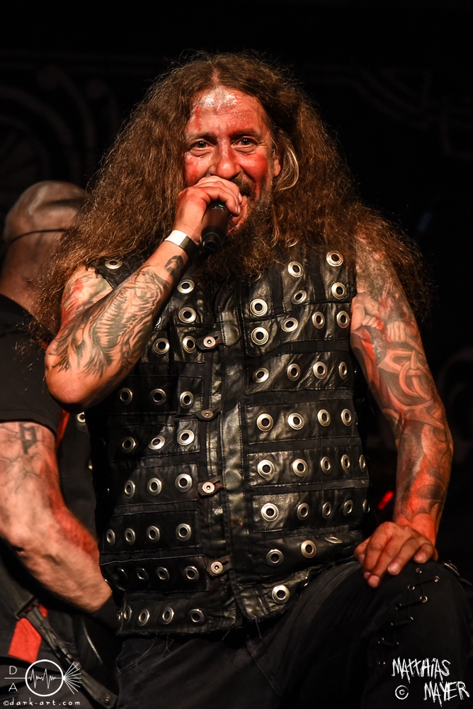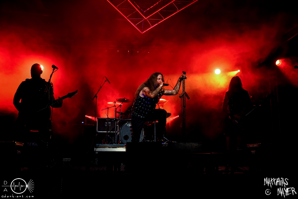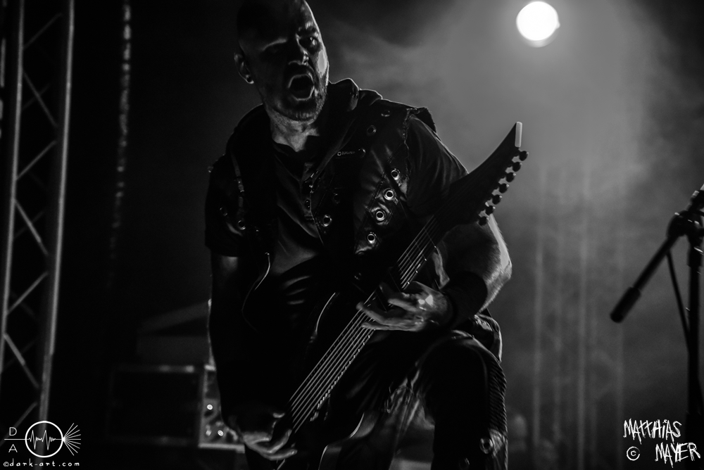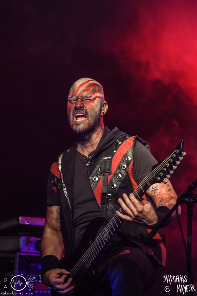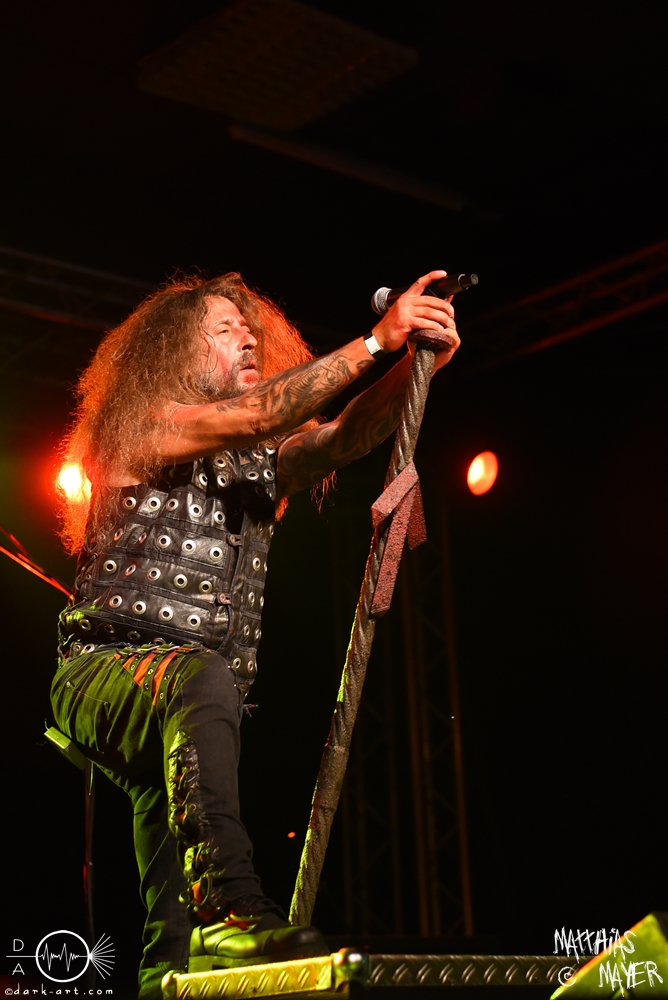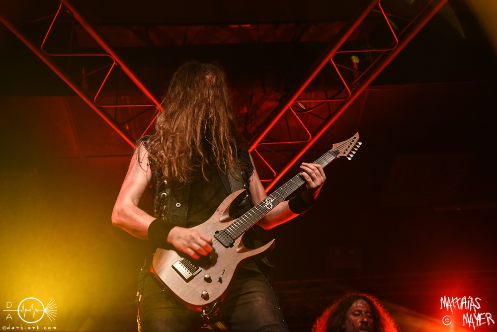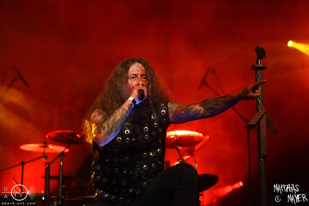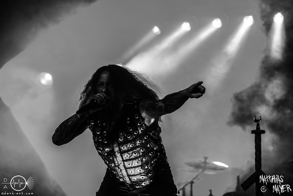 Und „Schwups“ da wart es schon 23 Uhr als der Umbau für den Freitag Headliner begann. Der Abend jedoch blieb im Zeichen der Heidnischen Götter stehen und es kam wieder eine seit über 20 Jahren aktive Band u Wort, welche ich nun auch schon länger nicht mehr live oder im Programm stehen hatte sehen. Das letzte Album „Tiwaz“ erschien auch bereits 2013 bei Massacre Records bevor es etwas stiller wurde um „Thrudvangar“. Jedoch immer noch schön zu sehen, dass die Herren weiter aktiv am Viking/Black Metal teilnehmen. Für mich als Fan der frühen Tage stellt sich hier direkt wieder die Frage, wann und wird es ein neues Album geben? Das wäre sicherlich sehr interessant. Bevor ich jedoch den Leser dieses Artikels zu sehr in meine Gedankenwelt entführe und mir meinem nostalgischen Gegrummel langweile, kommen wir zurück zu dem, was auf der Bühne und in der Halle passiert ist. Warpaint, Rüstung und „Cojones“, eben alles was einen richtigen Wikinger ausmacht und als wären sie nie „stiller“ geworden. Und so wurde die Stimmung, welche inzwischen schon im ganzen Haus am Toben war noch einmal zum Überlaufen gebracht. Party am Platz, aber Party dachten sich nun auch einige Fans und stellten fest, dass auf der Stelle tanzen zwar nicht dasselbe ist wie unter Leuten, aber immer noch besser und passender als nicht zu Tanzen. Was ich bei uralten Klassikern wie „Heilige Flamme“ bereits vom Erzählen her glauben würde, denn hier gab es auch für mich kein halten mehr.