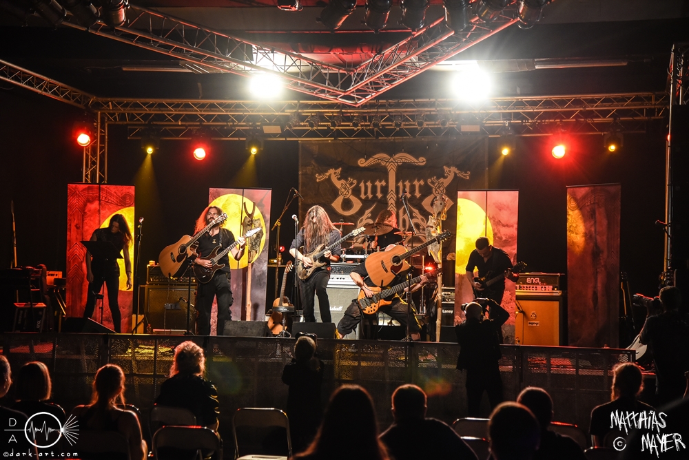 Und wie hätte es nach der langen Konzertabstinenz sein können? Man bemerkte kaum wie die Zeit verging und so wurde es schon Zeit für sie 3te und vorletzte Band des ersten Abends. Ein Name der sicherlich vielen Menschen aus der Metalszene geläufig ist gab sich nun die Ehre. Meine Damen und Herren, es folgte „Surturs Lohe“. Ein absolutes Urgestein der Pagan Metal Szene und sicherlich eine der ältesten Bandgeschichte in diesem Genre, weltweit. Und so spürte man als langjähriger Anhänger der Szene direkt eine Art Ehrfurcht als Sänger und Gitarrist „Stephan Gauger“ den ersten Ton auf der Bühne anschlug. Nun hatten sich die Zuschauer auch auf die neuen Bedingung die im Saal herrschten gut eingestellt und wurden etwas lockerer und lauter auf ihren Sitzplätzen. Pagan Metal der Gründungszeiten dieses Genres, so dass es mir teils kalt den Rücken herunter lief vor lauter Nostalgie.