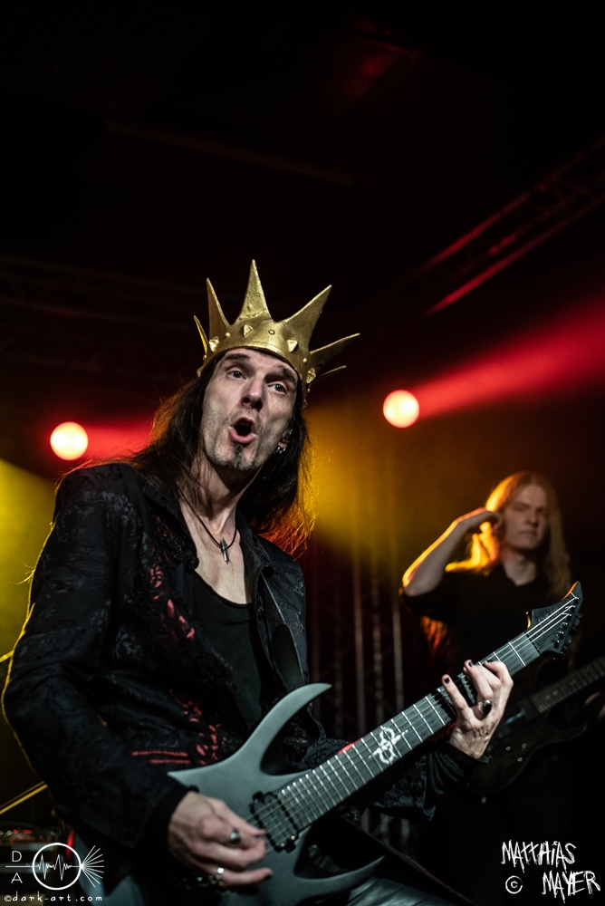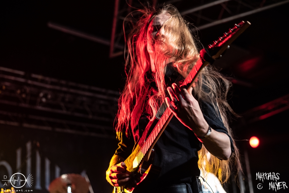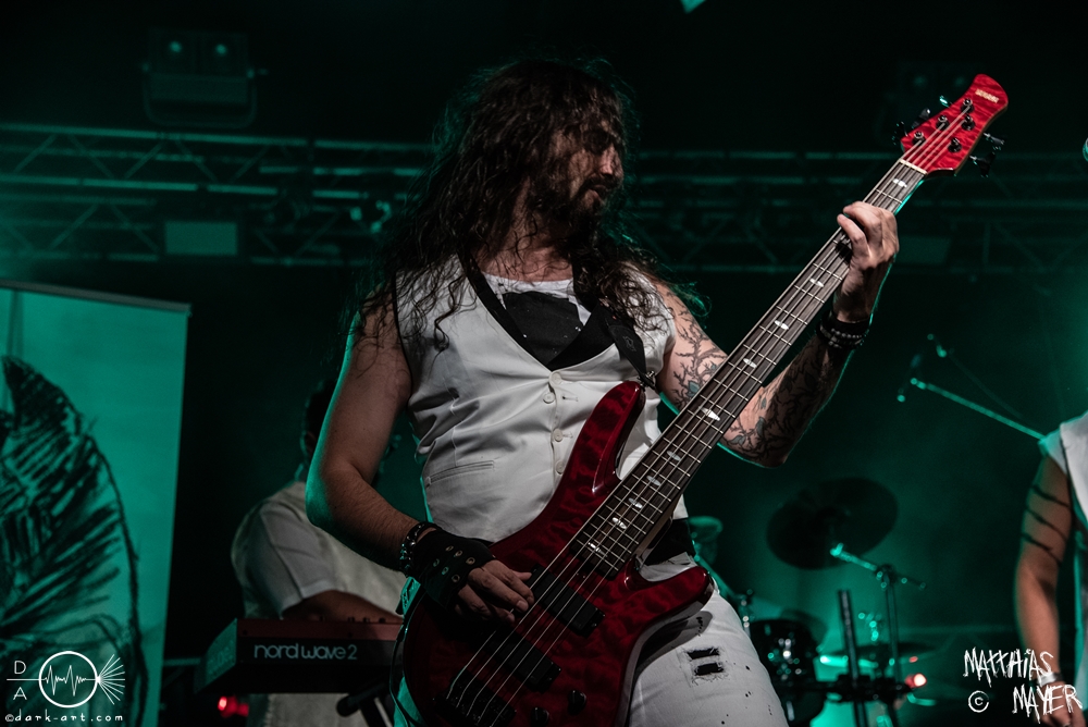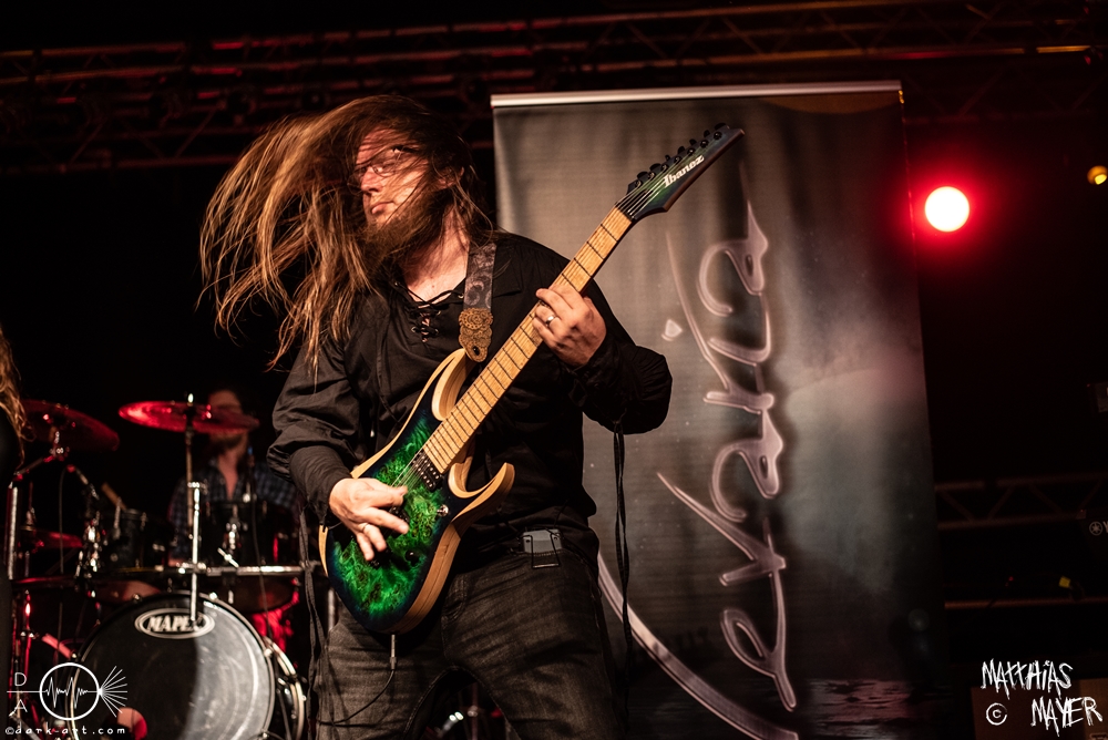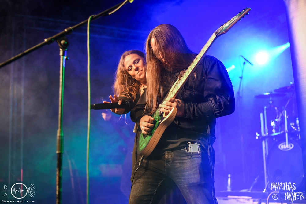 Und nun kam ein ganz besonderes Bonbon für mich persönlich auf die Bühne. Wobei es sich hierbei ja nur um ein Bonbon aus der ganzen Packung handelte. Die Regensburger Symphonic Metal Band „Nevaria“ war an der Reihe. Eine Band die dem ein oder anderen inzwischen sicherlich ein Begriff seien dürfte. Im Herbst 2019 erschien das Debutalbum „Finally Free“ und ist jedem Freund des Genres nur ans Herz zu legen. Und auch die Interaktion auf der Bühne ist ein völlig richtig umgesetztes Element der Band. Die Interaktion zwischen Sängerin „Tanja“ und Keyboarder „Markus“ (welcher den Gesang mit härteren Einlagen unterstütz) aber auch die Bewegung an Gitarre und Bass geben ein rundes und schönes Auftreten und Bühnenbild ab. Songs die alle Herzen von Nightwish bis Epica Fans überzeugen dürften mit etwas mehr rockiger Stimme als in Richtung der eben genannten. Eingängig, träumerisch, atmosphärisch und der richtigen Portion Metal. Da lachte einem das Herz, denn was will man großartig mehr?
