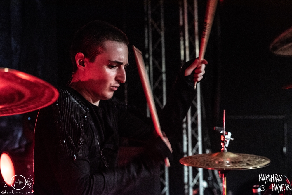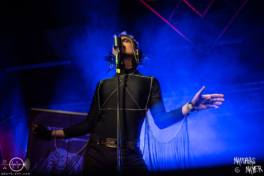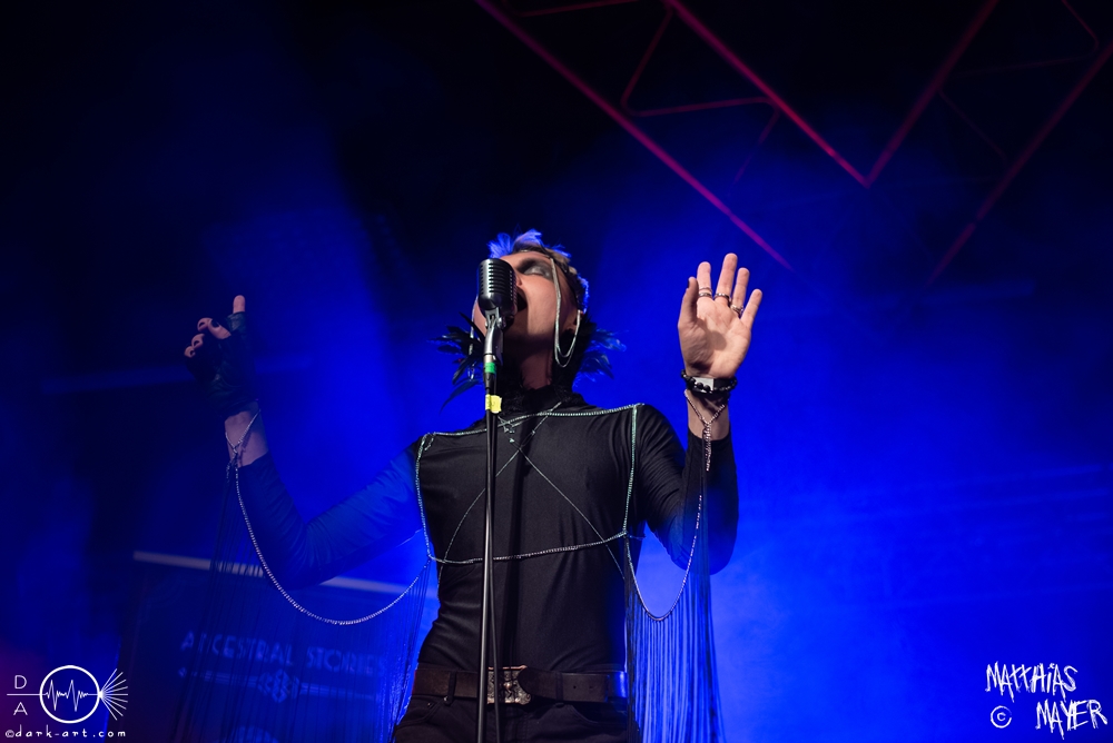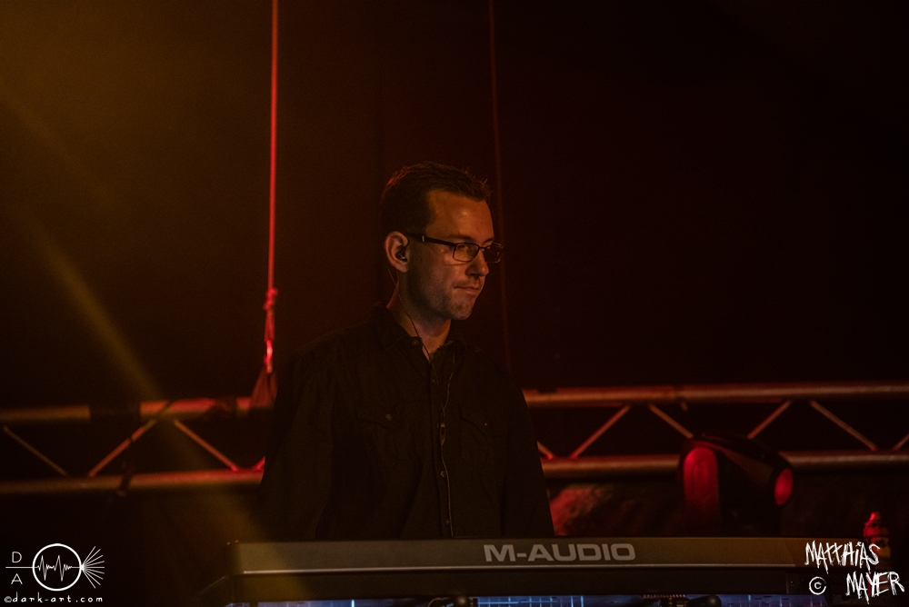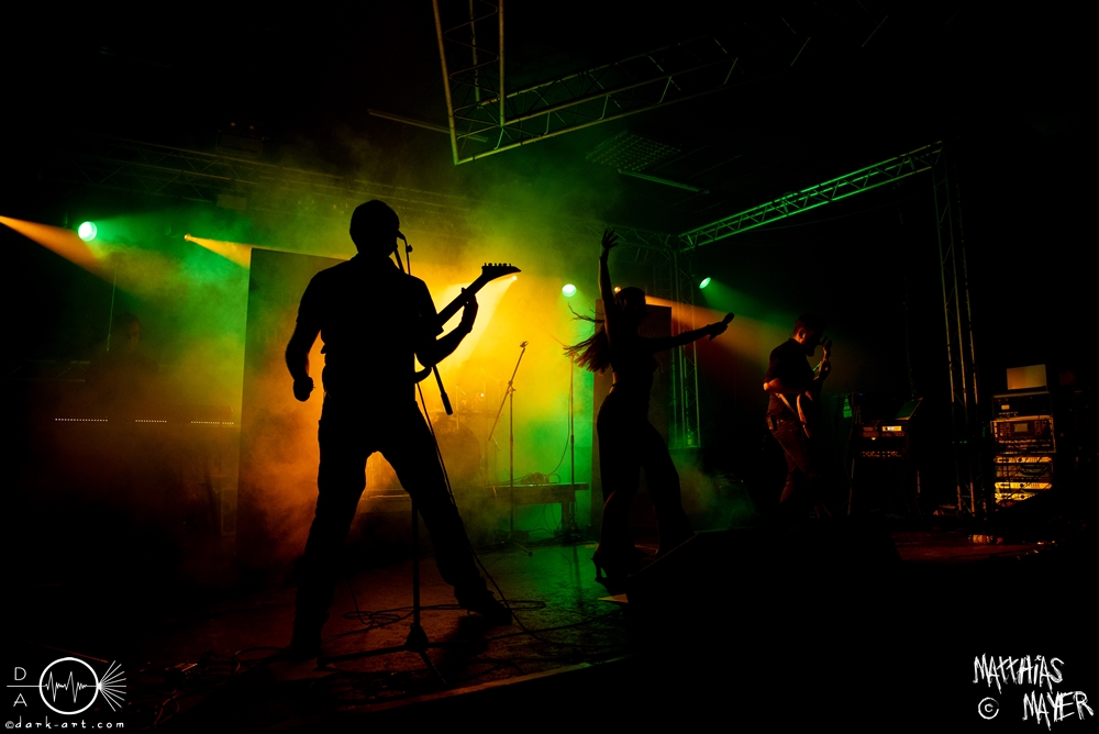 Und es wurde bereits nachmittags dunkel und der Tag startete mit „Glassgod“. Dark, Gothik, Atmosphäre auf orchestraler und Synthesizer Basis. Das noch recht frisch auf die Welt gekommene Leipziger Quartett präsentierte ihr komplettes Debutalbum zum Tagesauftakt. Eine Band die etwas aus dem Line Up des Festivals herausragte, da es eine von 2 Bands mit einem männlichen Sänger handelte. Auch musikalisch setzte sich „Glassgod“ vom restlichen Programm ab. Es fällt mir schwer das Ganze in die richtigen Worte zu fassen, da es sich mit der Bühnenpräsenz zu einer ganz eigenen Atmosphäre die irgendwo in Richtung eines John Carpenter Soundtracks gemischt mit Rock/Metal und gepaarten Cleanen Vocals und Gegrowle.