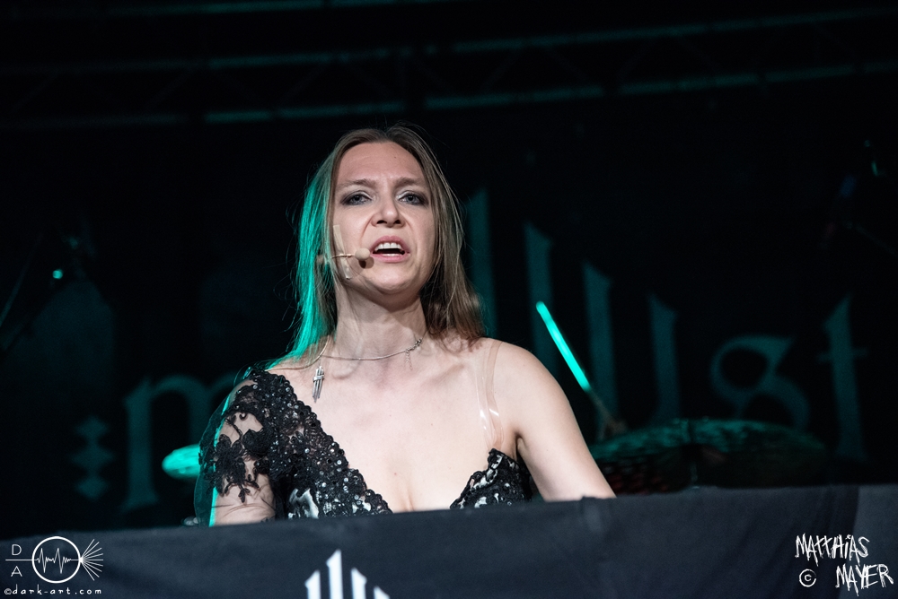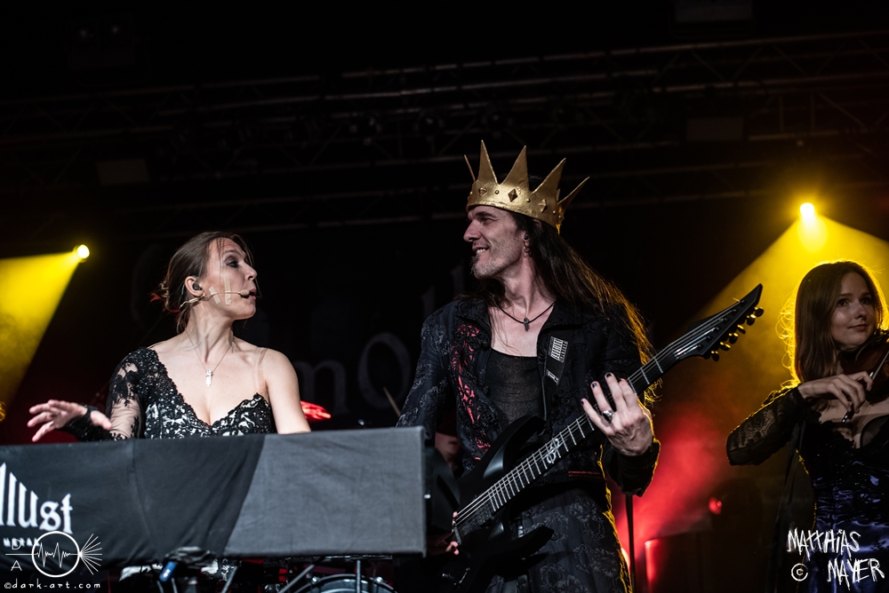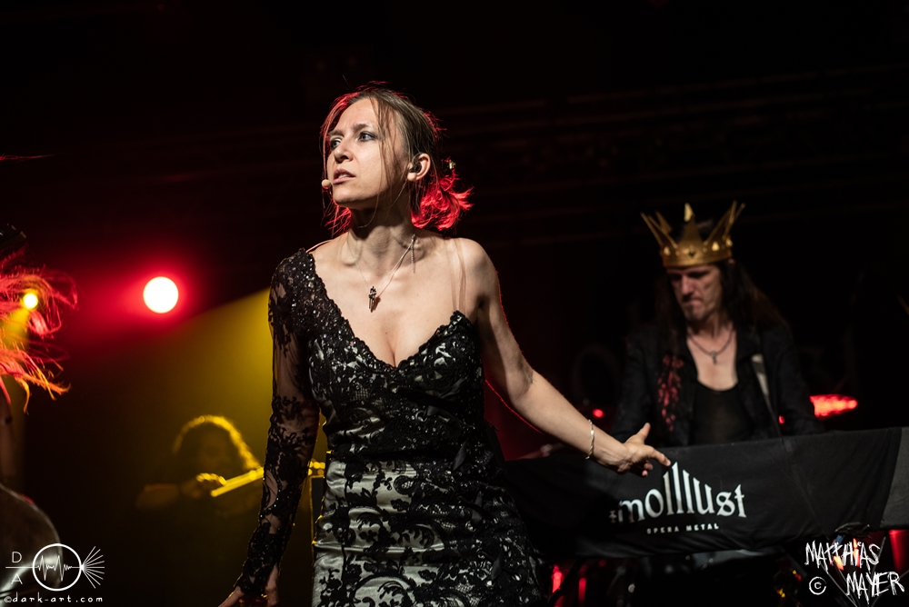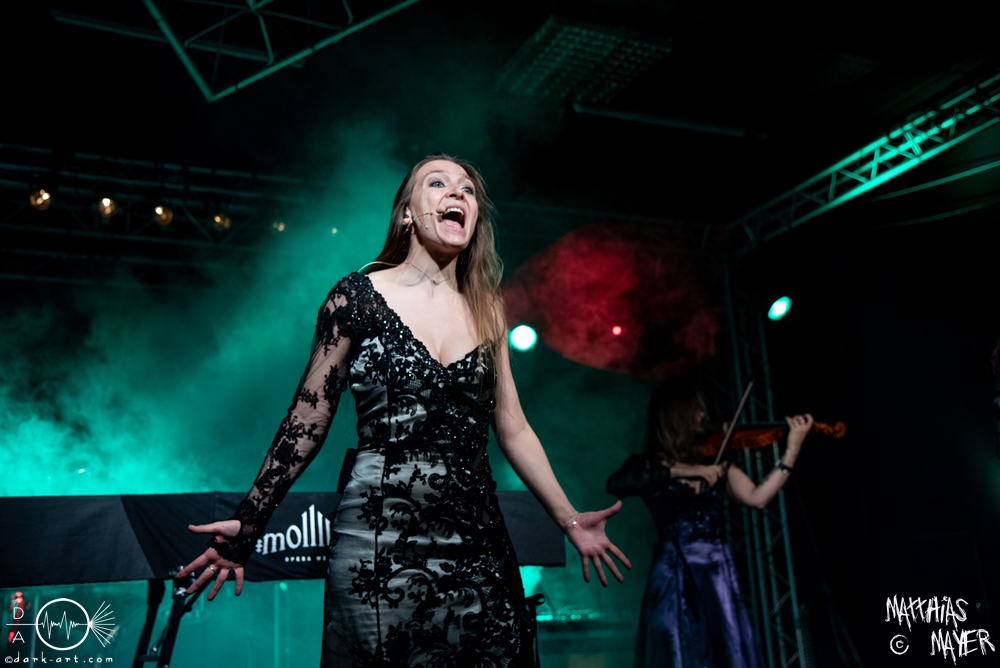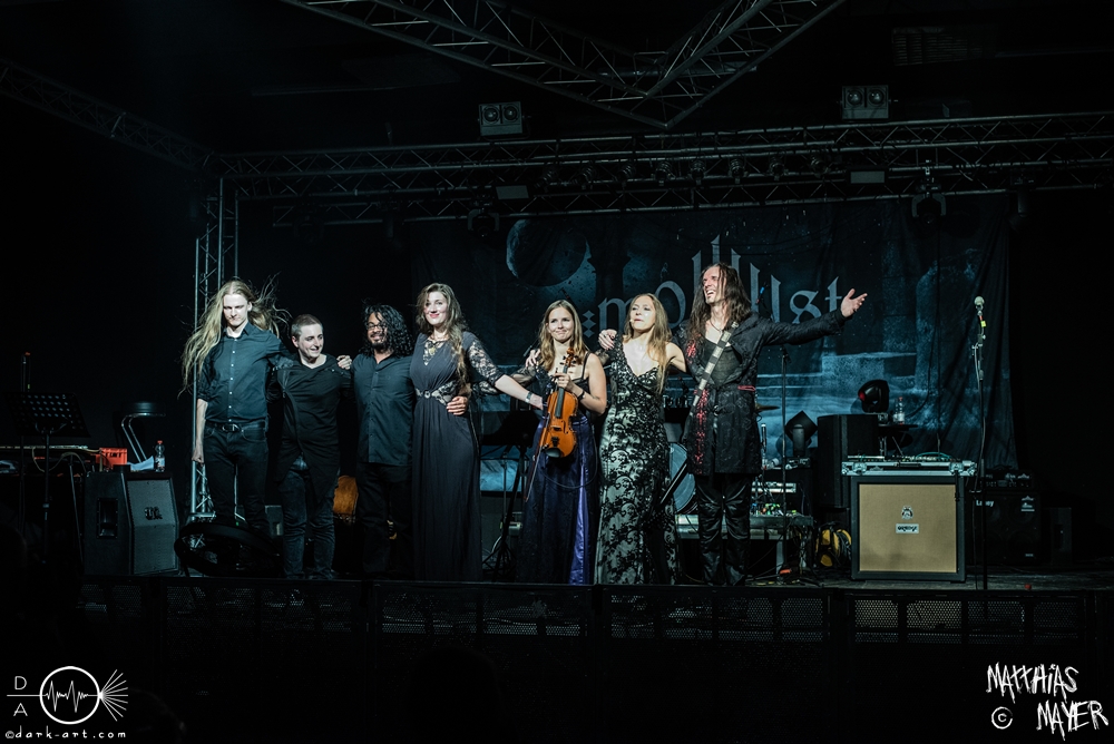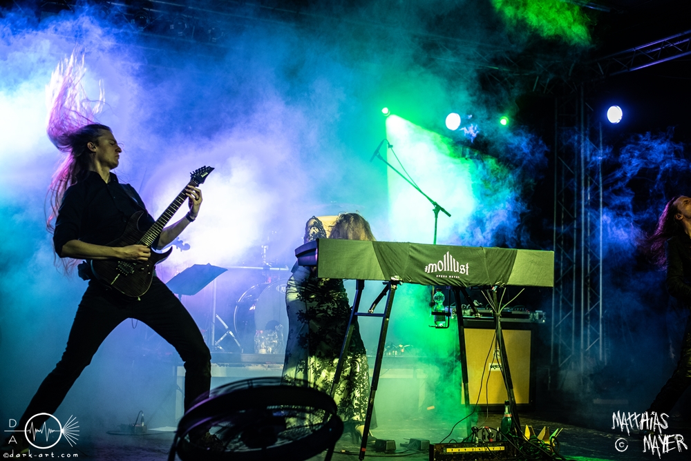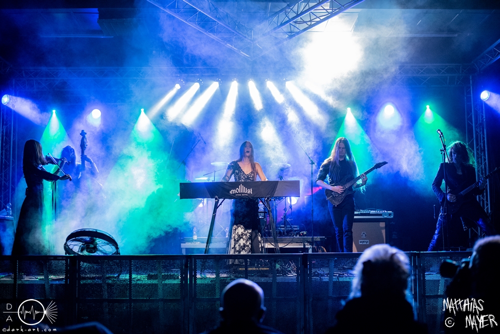 Und dann kam das große Finale. Die Gastgeber „Molllust“ headlineten das „Winds and Woods meet Metal Festival“. Die Truppe, welche auch aus mehreren Mitgliedern von „Haggard“ besteht und sich um Frontfrau und Ideengeberin „Janika Groß“ formiert liefern etwas, dass es vorher so in der Metalszene auch noch nicht gab. Opera Metal heißt das Zauberwort das sich die Band selbst auf die Flagge geschrieben hat. Was soll man sich darunter nun wieder vorstellen neben all den Symphonic Metal Sparten die sich auch auf dem Festival sammelten und wie man es ehr allgemein kennt? Harte Musik, die im Stil Klassischer Musik geschrieben wird und mit harten E-Gitarren und Drums auf den richtigen Level getrieben wird umso wohl Klassische Musik zu verkörpern, aber den Metal nicht zu kurz kommen lässt. „Molllust“ dürfte ja in der Szene kein Fremdwort mehr sein, da man sicherlich als „Haggard“ Fan schon davon gehört hat, oder bereits auch die ganz großen Festivals wie Wacken mit Bravur gemeistert wurden. Klassische Instrumente wie Kontrabass geeint in einer Metalformation mit E-Gitarre und Piano. Als ich davon das erste Mal hörte, konnte ich es mir auch nur schwer vorstellen, was hierbei herauskommen soll. Und ich kann es nur so zusammenfassen. Musik auf ganz hohem Niveau, ganz großer Atmosphäre, großartiger Bühnenpräsenz und einer ordentlichen Portion Härte, die alles sehr mitreisend auf den Zuschauer überträgt. Dazu die mächtige Sopranstimme der Frontfrau. Ich hoffe dass meine lieben Leser sich nun ein Bild zu „Molllust“ machen können und ich Interesse geweckt habe, aber wenn eure Neugierde euch nun nicht mehr loslässt, im Jahr 2020 hat man ja schnell die Möglichkeit ein „reinhören“ zu riskieren, darum gönnt euch dies auf jeden Fall einmal und macht euch selbst ein Bild, da es nur schwer zu beschreiben ist.