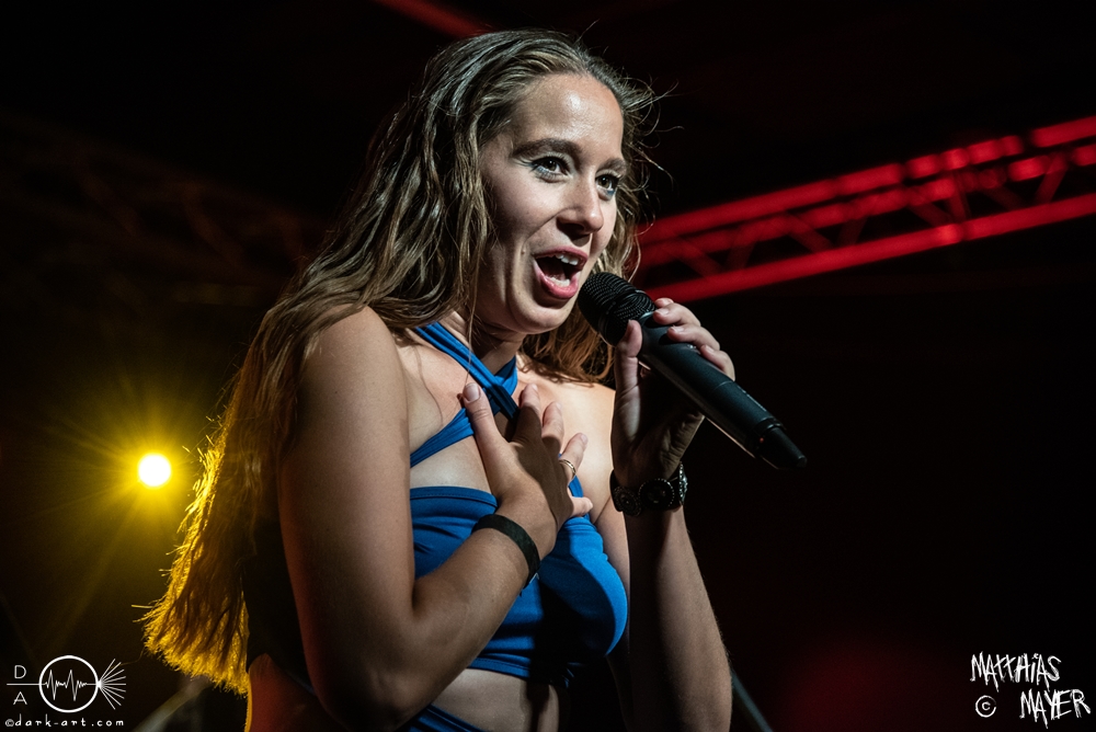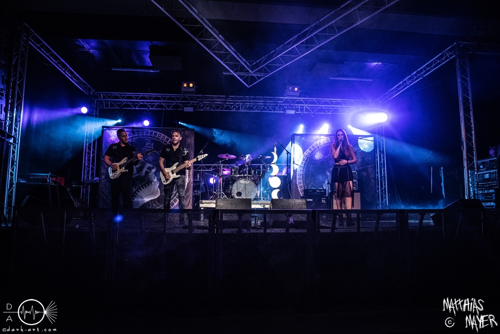 Symphonischer Power Metal mit weiblichem Gesang geht in Italien seit einigen Jahren groß umher und steht für Qualität. „Moonlight Haze“ welche erst seit 2018 bestehen aber schon 2 Full Length Alben veröffentlicht haben, enterten jetzt die Bühne. Ein Auftritt dem ich auch sehr entgegen gesehnt habe, da ich die Band nur vom groben reinhören aus dem Internet kannte und mir grob vorstellen konnte was die Herren um Sängerin „Chiara Tricarico“ (welche unter anderem noch bei „Sound Storm“ und „Ravenword“ gesanglich unterwegs ist) gemeinsam abliefern werden. Und schon ging es los mit dem Titel „Enigma“ vom neuen Album „Lunaris“. Eine großartige Stimme untermalt von symphonischen und klassischen Heavy Metal Riffs mit viel Energie die vorantreibt. Und dieses Konzept wurde von der ersten bis zur letzten Sekunde verkörpert und das Publikum begeistert. Und deswegen wir sich dieser Stil von Musik sicherlich auch noch international in der Metalszene durchsetzen und in der Kombination mit Power Metal sicherlich bekannter werden. Tolle Band, denen jeder gerne einmal eine Chance geben sollte.